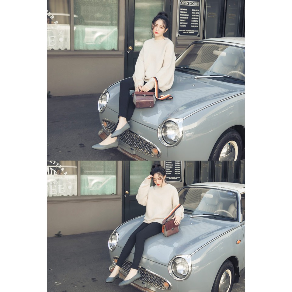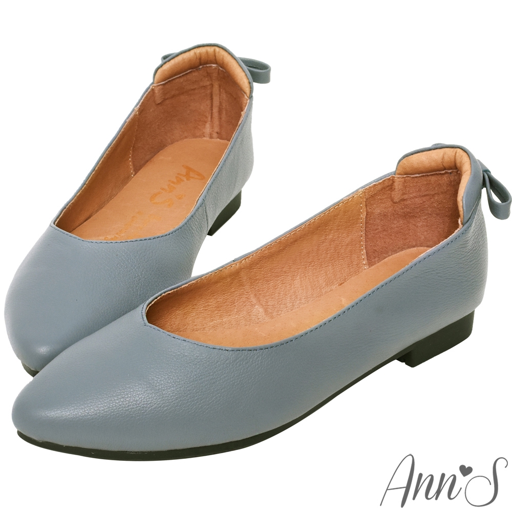 Ann’S再讓我睡一下就好-後跟小蝴蝶結真皮平底鞋-藍
