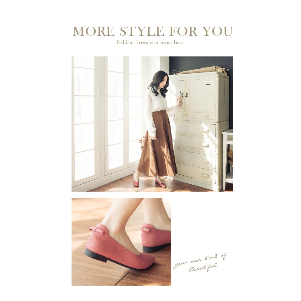 Ann’S再讓我睡一下就好-後跟小蝴蝶結真皮平底鞋-乾燥玫瑰
