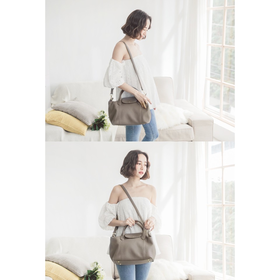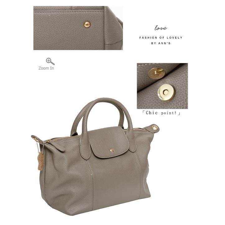 Ann’S質感全牛皮訂製翻蓋兩用水餃包-灰