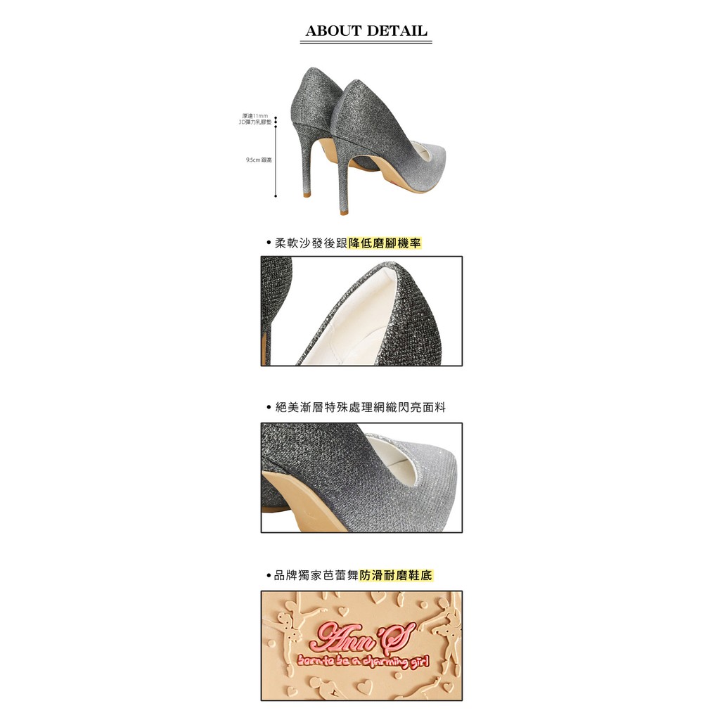 Ann’S無比氣勢-軟質漸層亮片高跟尖頭鞋-銀