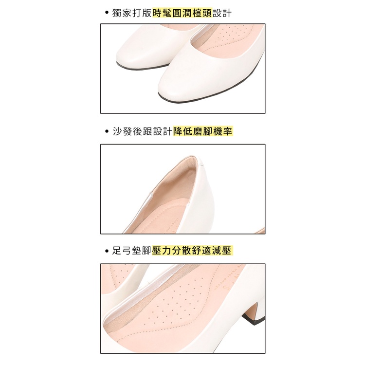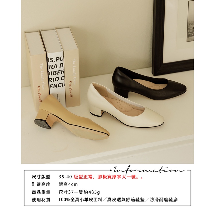 Ann’S素面通勤鞋-小羊皮全真皮杏仁楦粗跟包鞋-4cm-米白