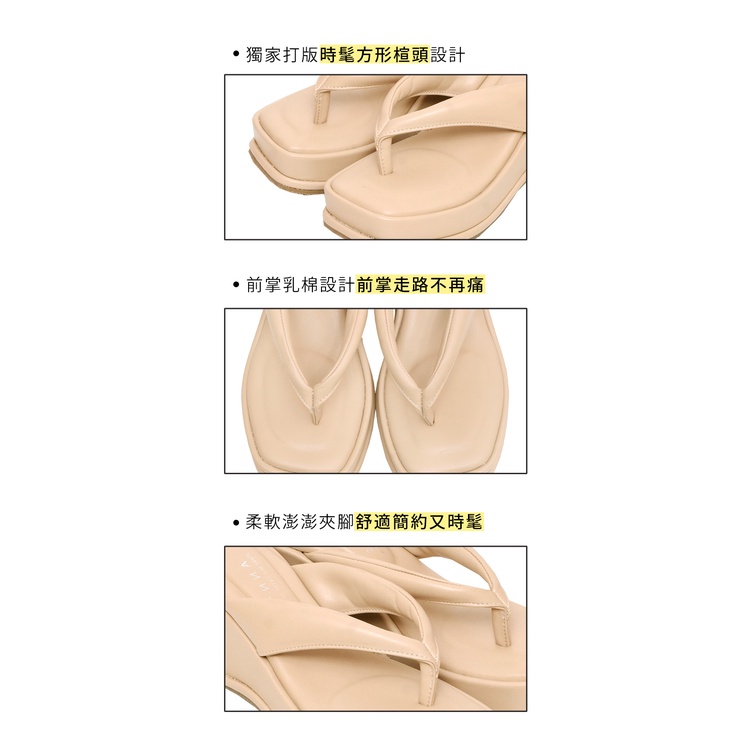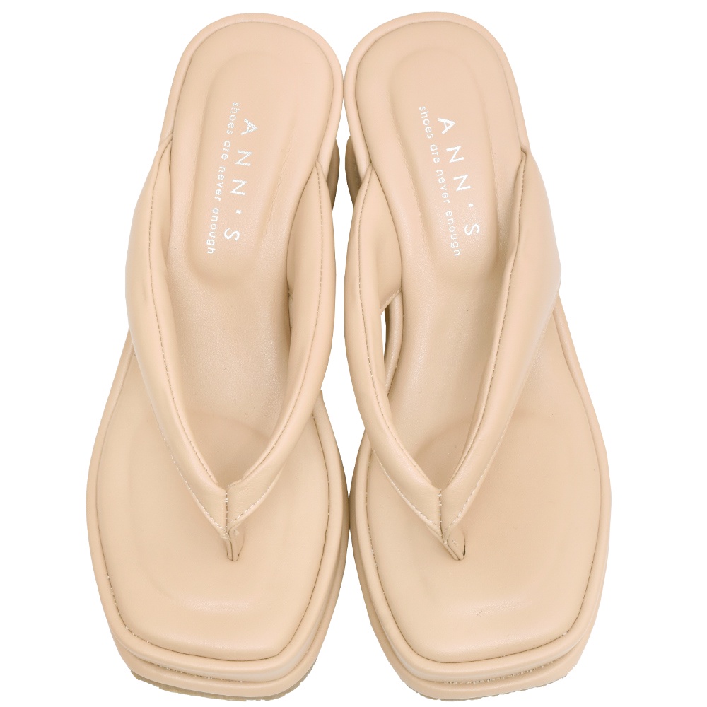 Ann’S美圖厚底系列-澎澎夾腳方頭涼拖鞋-7.5cm-杏