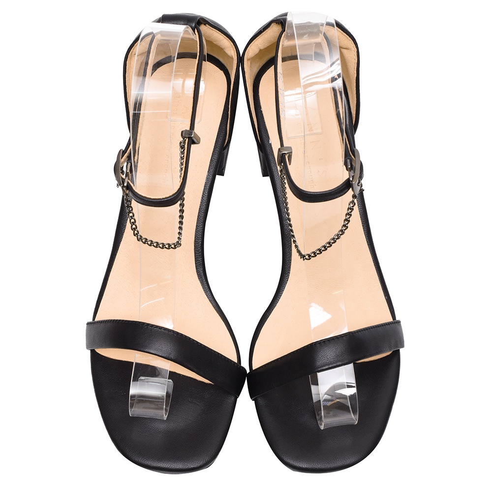 Ann’S升級小羊皮2.0-不踩雷美腿製造機一字帶涼鞋-細帶6公分中跟-黑