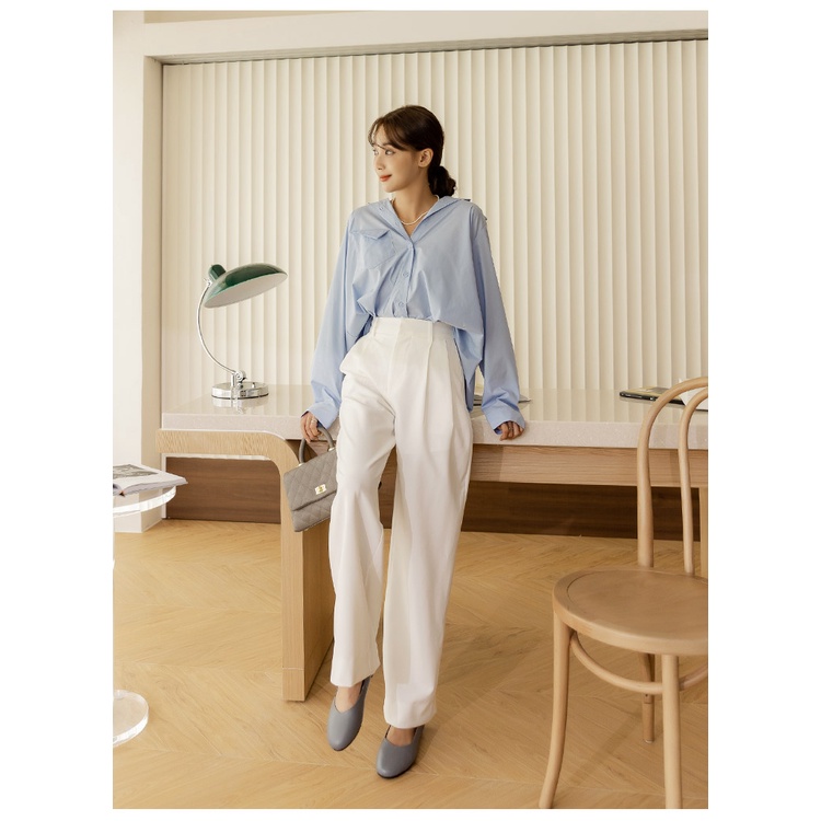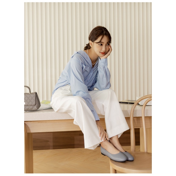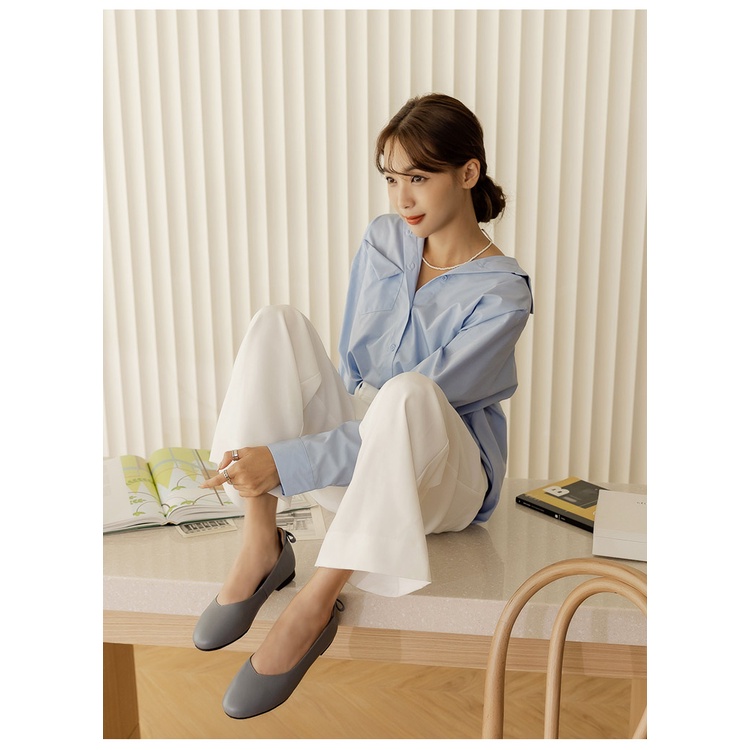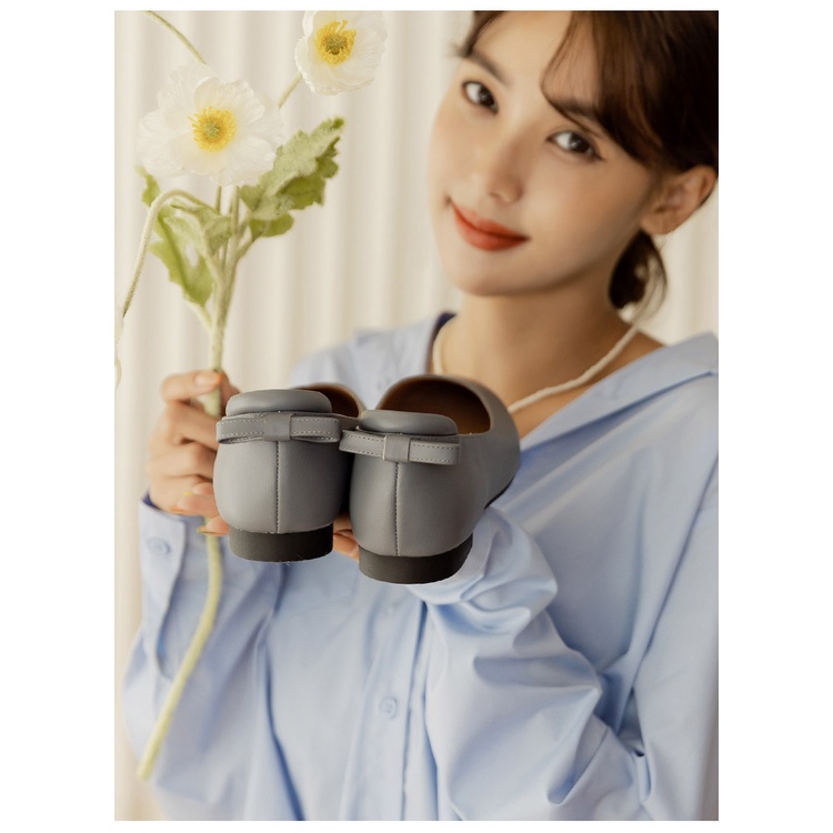 Ann’S再讓我睡一下就好-後跟小蝴蝶結圓頭真皮平底鞋-藍