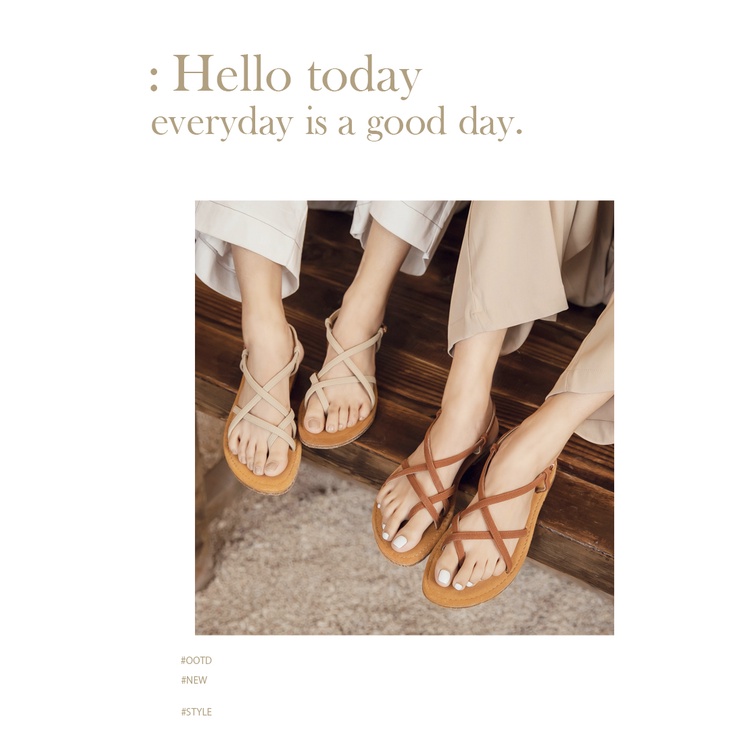 Ann’S水洗牛皮-美式女孩夾腳寬版平底涼鞋-棕