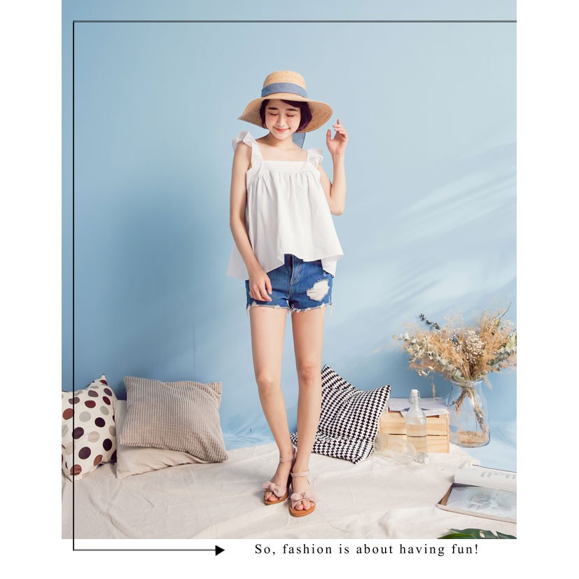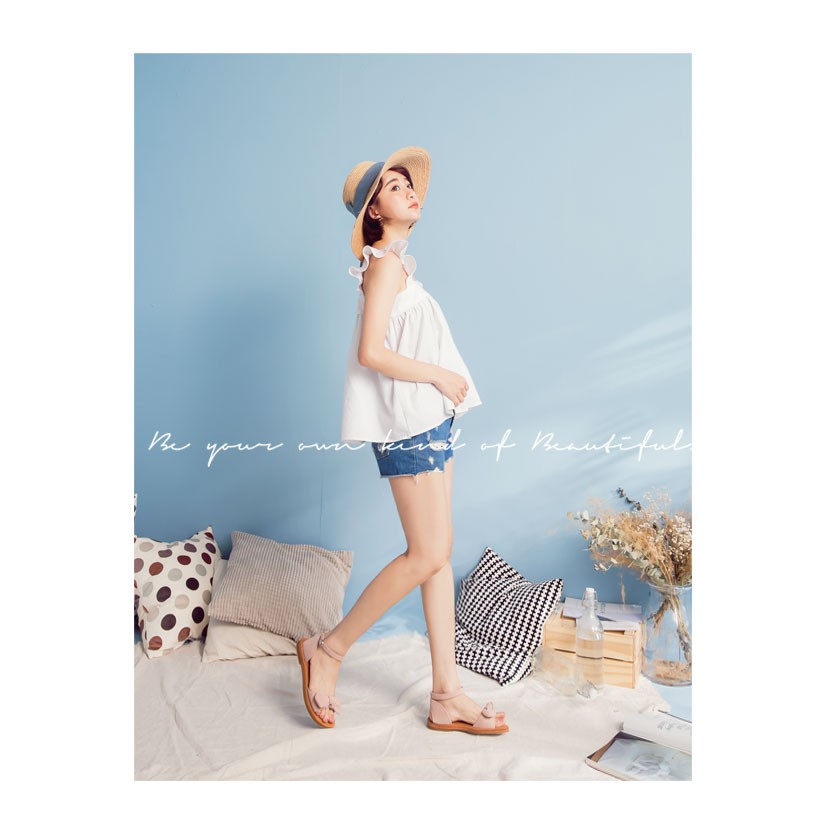 Ann’S水洗牛皮-甜美扭結寬版平底涼鞋-米白