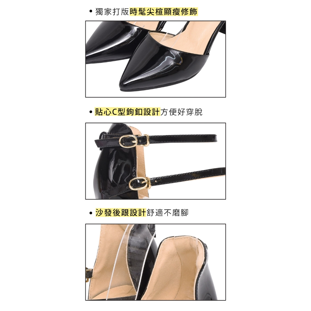Ann’S柔美心動進階版-漆皮多穿法繫帶粗跟尖頭鞋5.5cm-黑