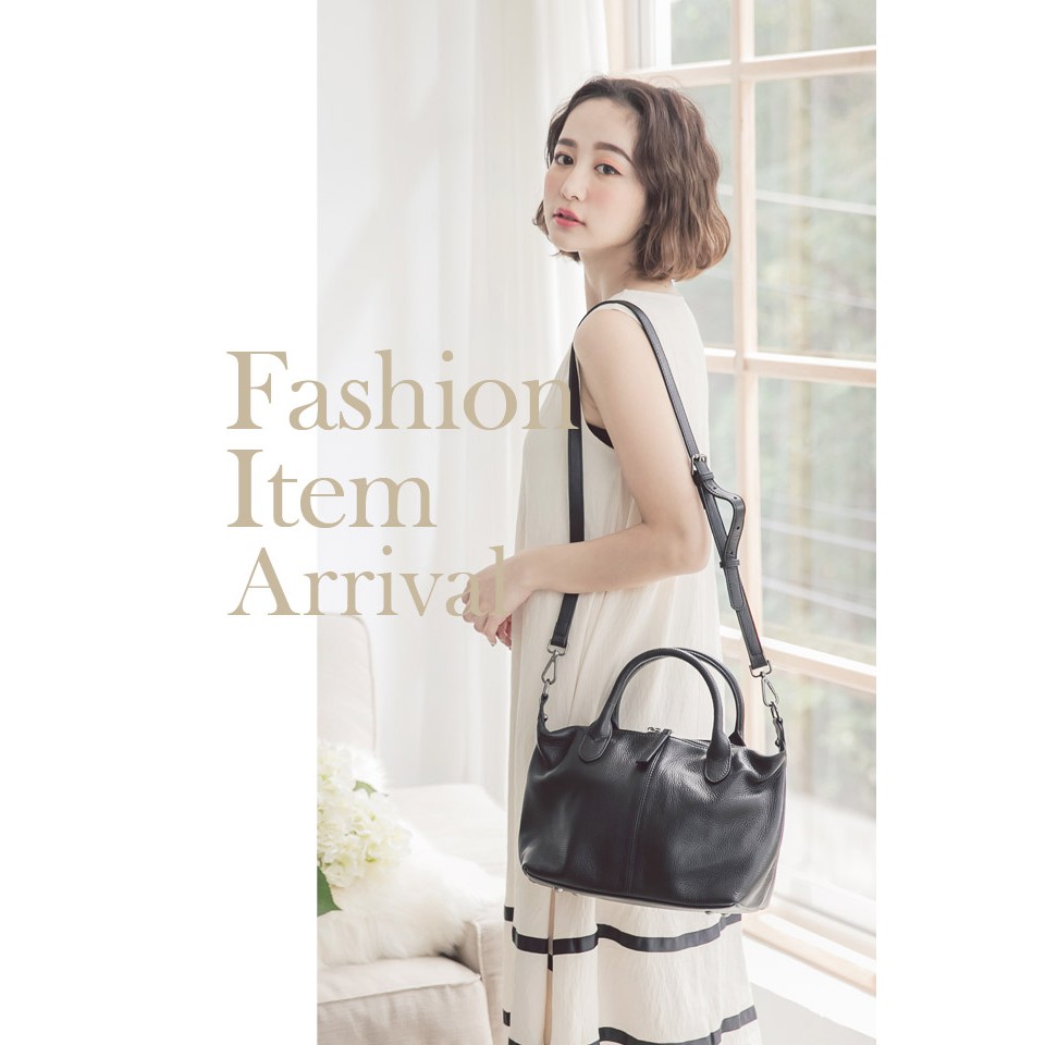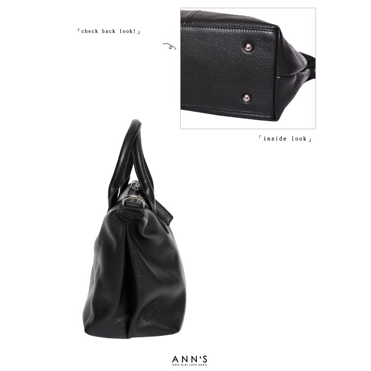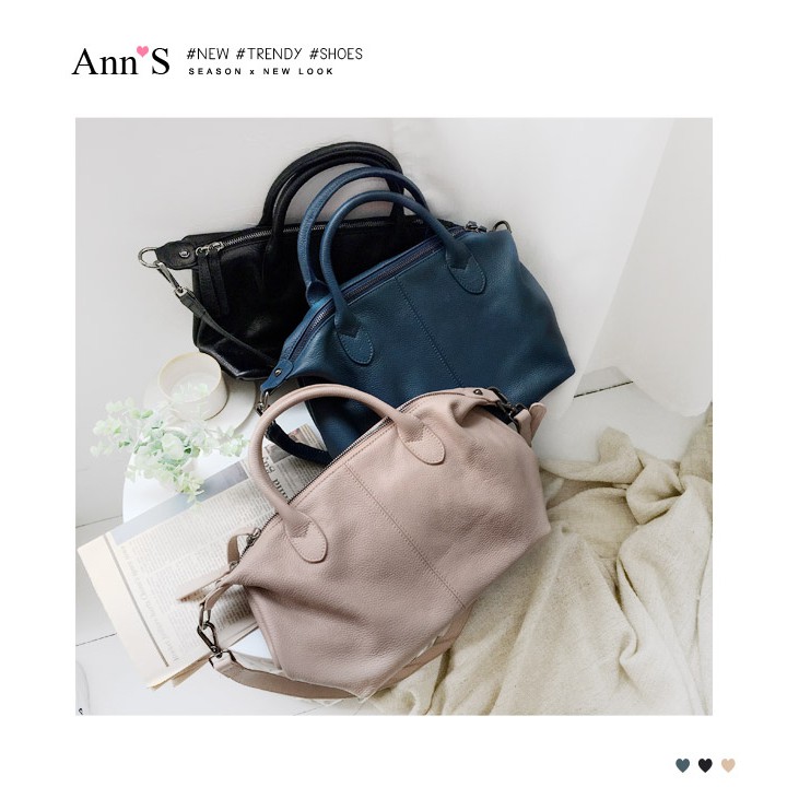 Ann’S小版質感全牛皮訂製雙拉鍊2WAY貝殼包-黑