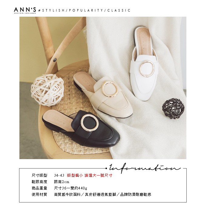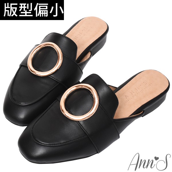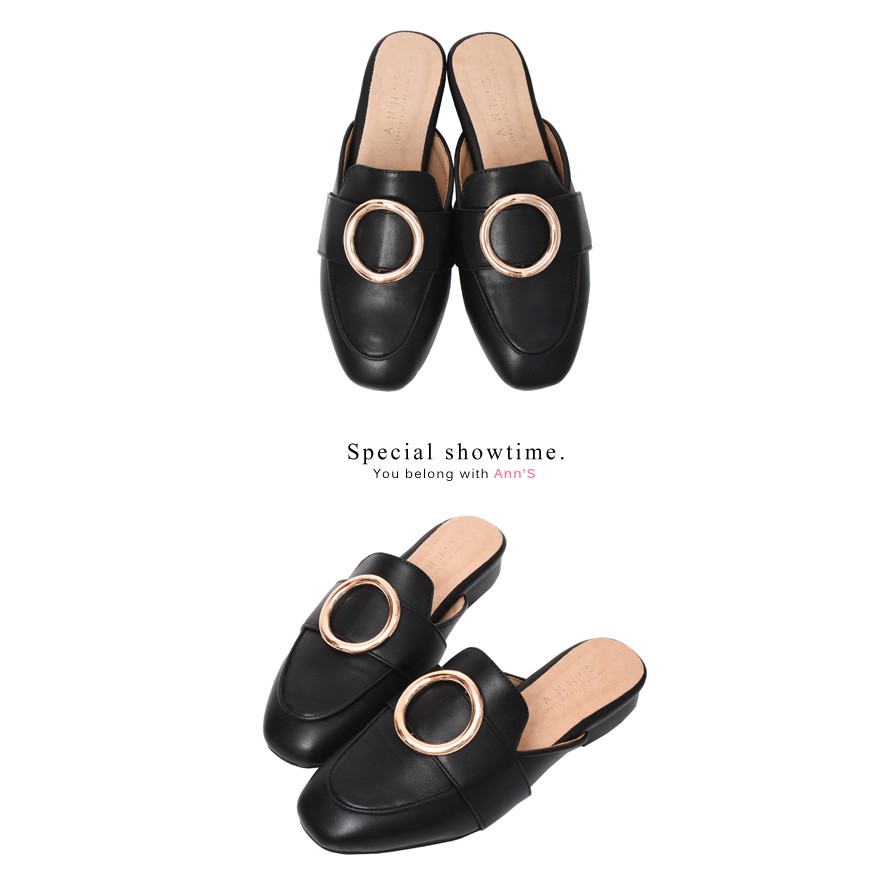 Ann’S放鬆時尚-不破內裡質感牛紋金圓環穆勒鞋-黑