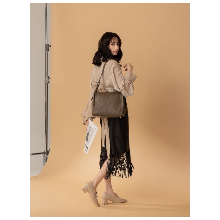 Ann’S立體大容量-頂級牛皮真皮多WAY吐司包-卡其
