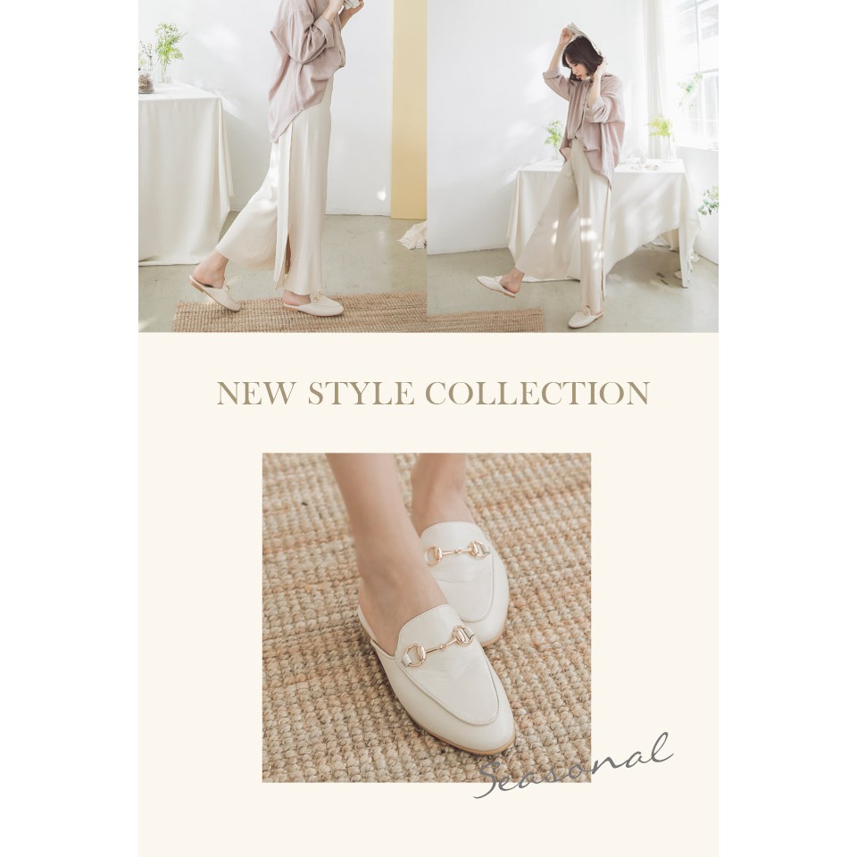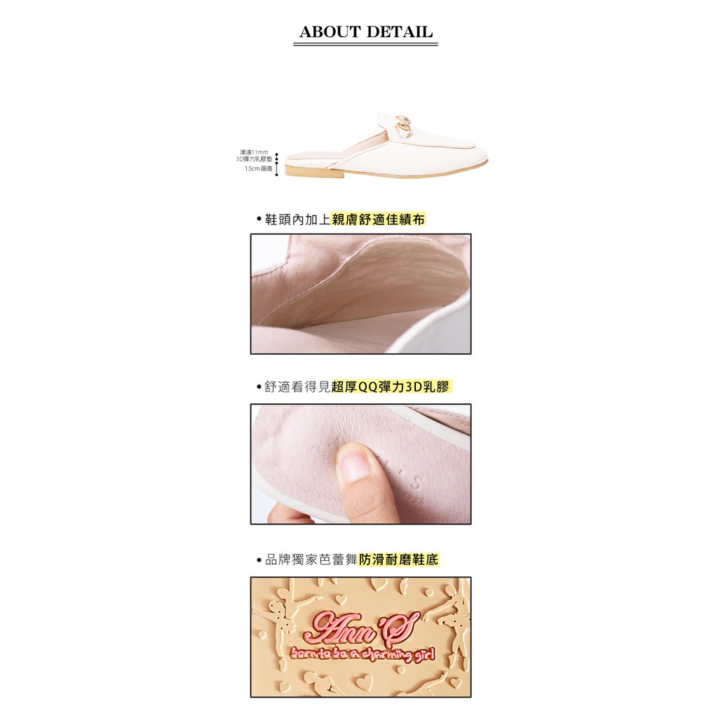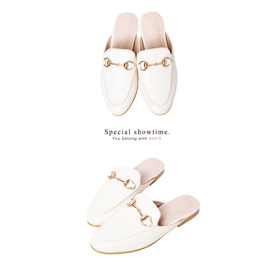 Ann’S質感真小羊皮不破內裡金釦穆勒鞋-米白(版型偏小)
