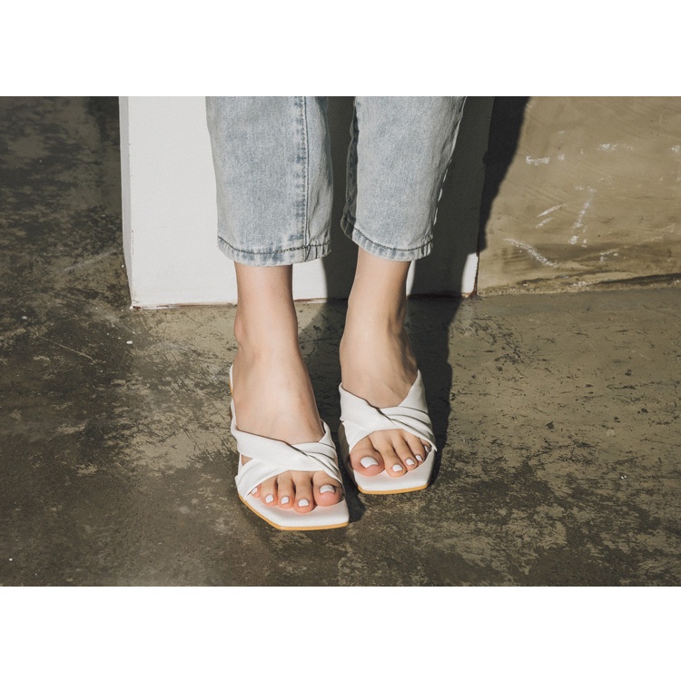 ANNSTAR MEIMEI聯名-極度修飾腳型超顯白粗跟涼鞋4cm-白