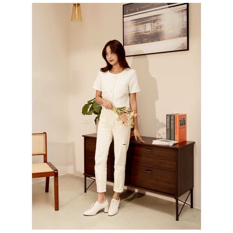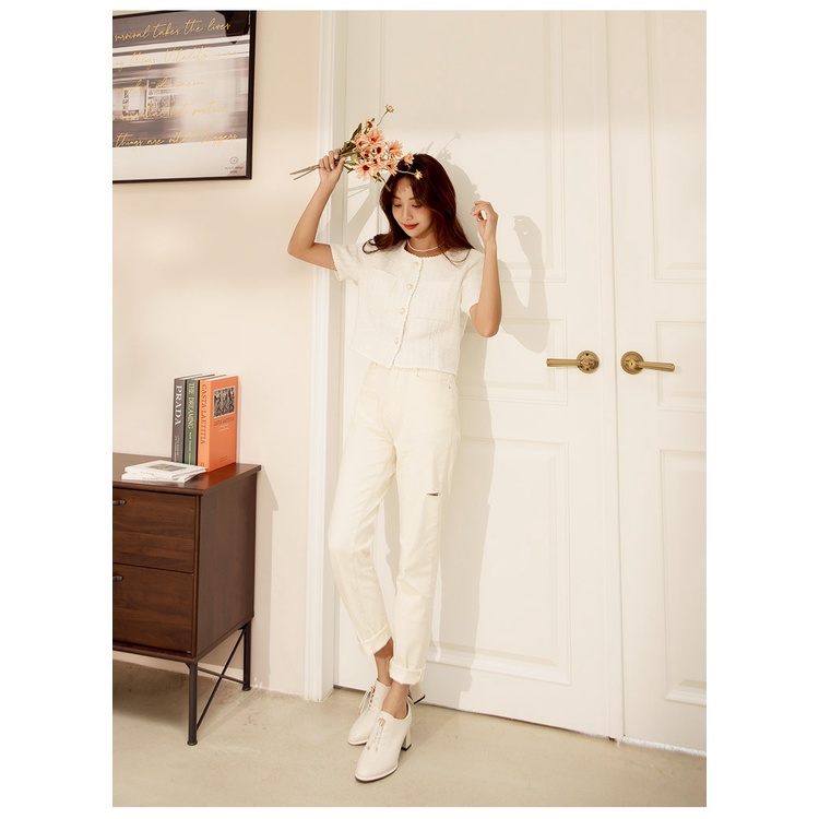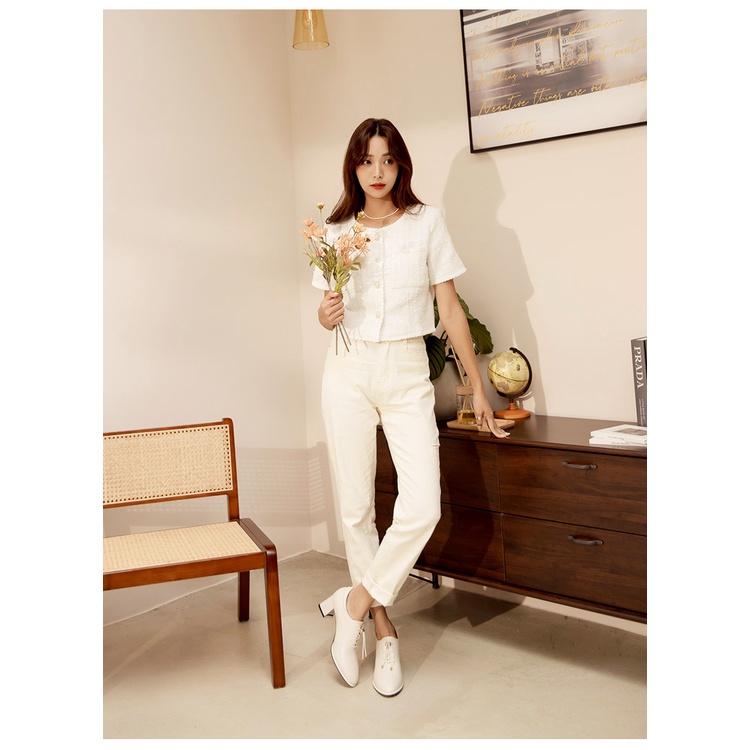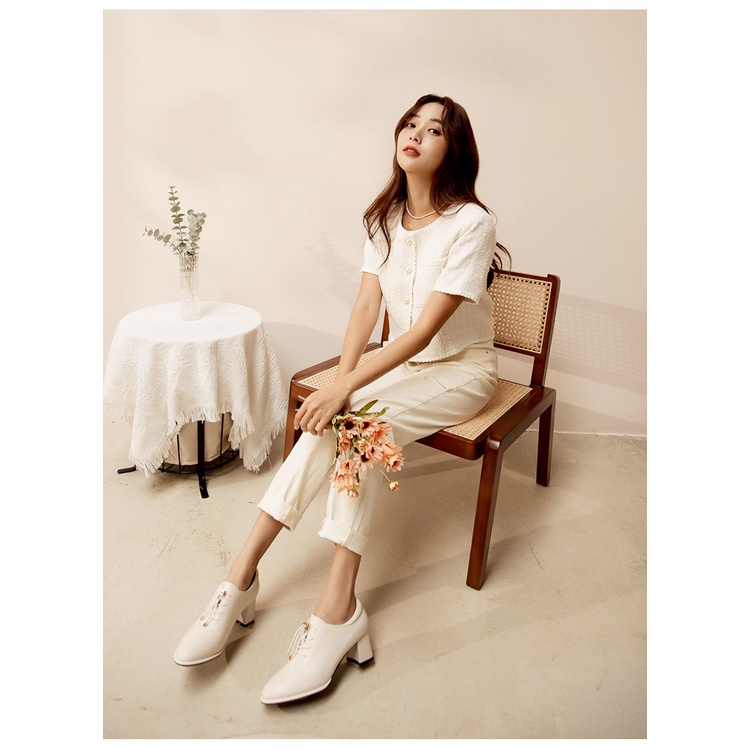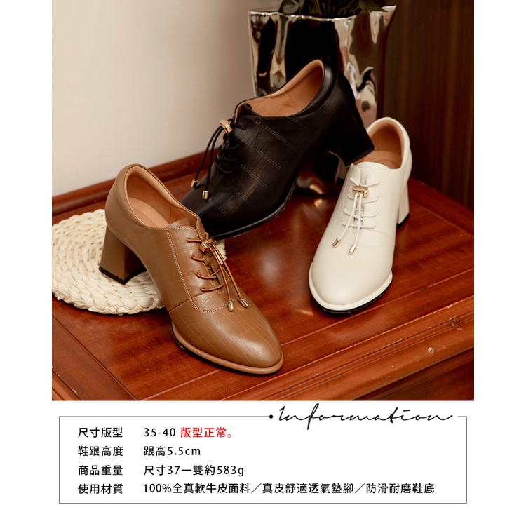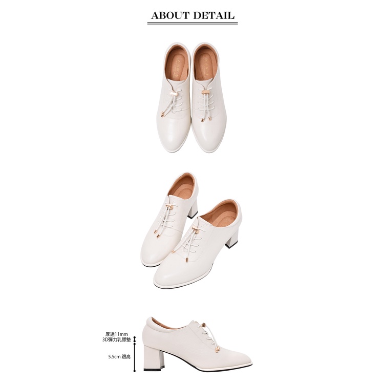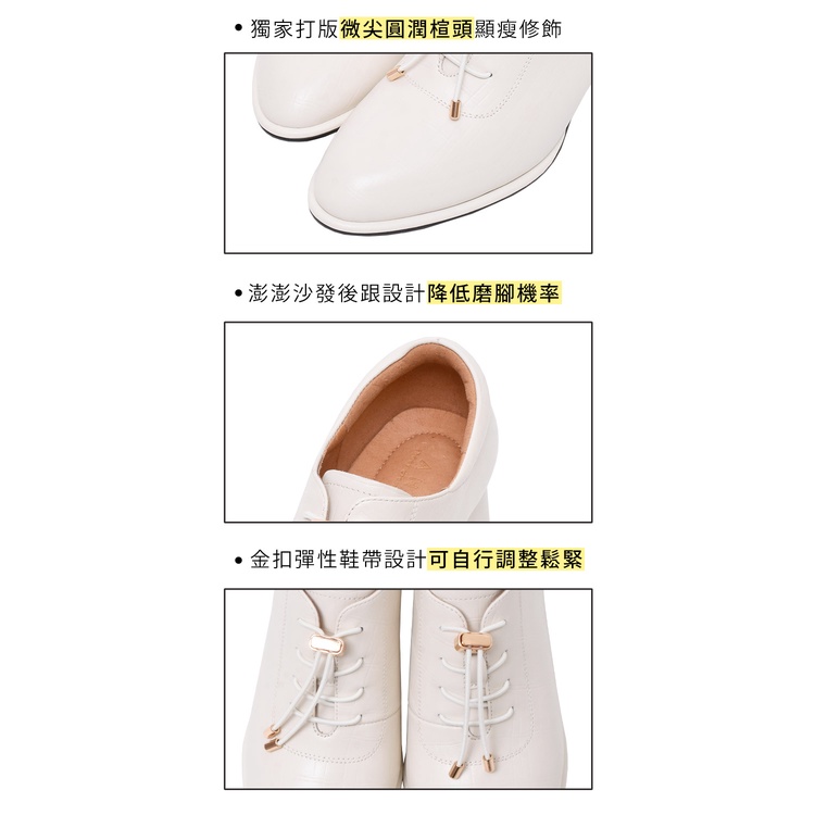 Ann’S免綁鞋帶!顯瘦楦型牛皮全真皮粗跟踝靴5.5cm-米白