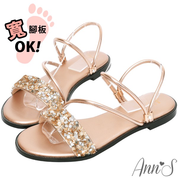 Ann’S鑽石糖碎石曲線寬版兩穿平底涼鞋-玫瑰金
