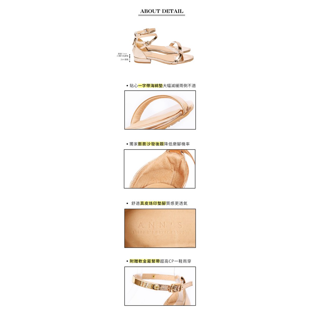 Ann’S不踩雷美腿製造機一字帶涼鞋-細帶2公分平底-玫瑰金