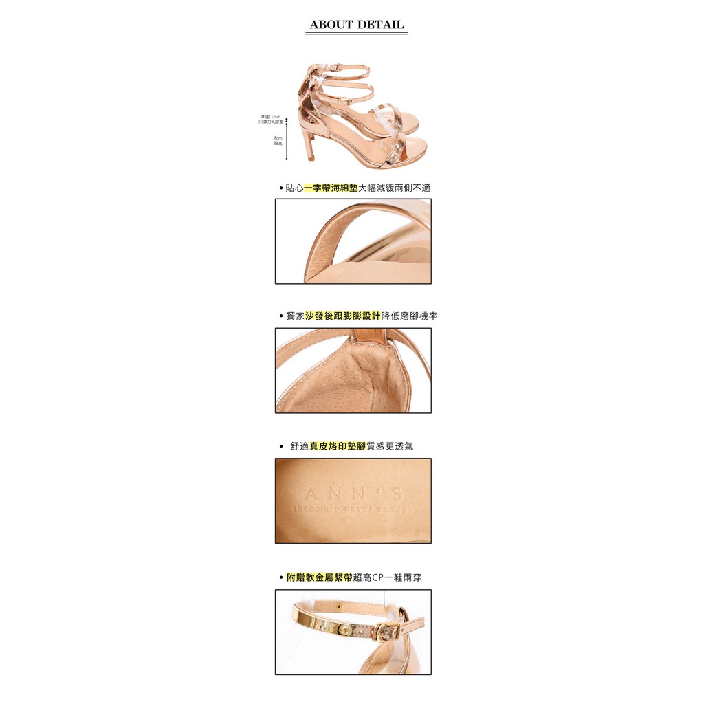 Ann’S不踩雷美腿製造機一字帶涼鞋-細帶8公分高跟-玫瑰金