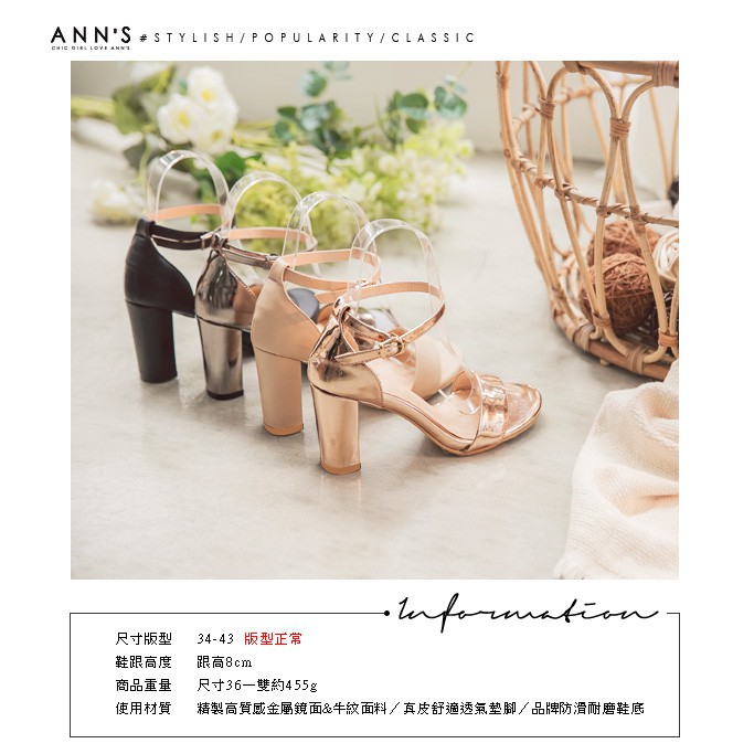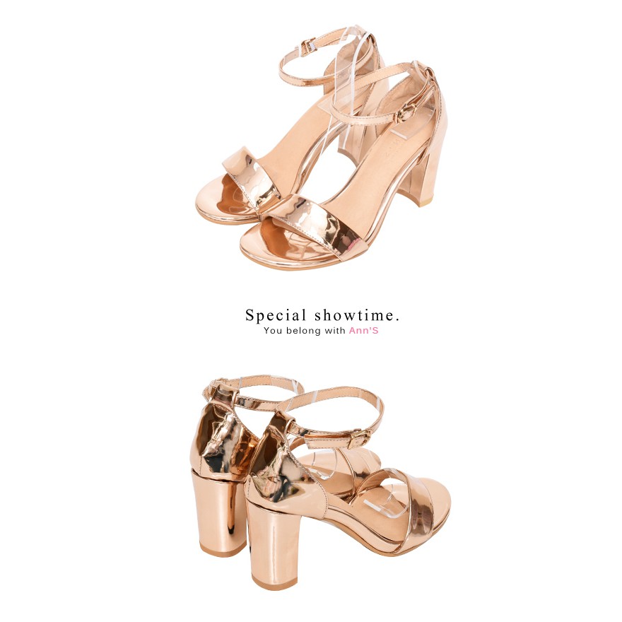 Ann’S不踩雷美腿製造機一字帶涼鞋-寬帶8公分高跟-玫瑰金