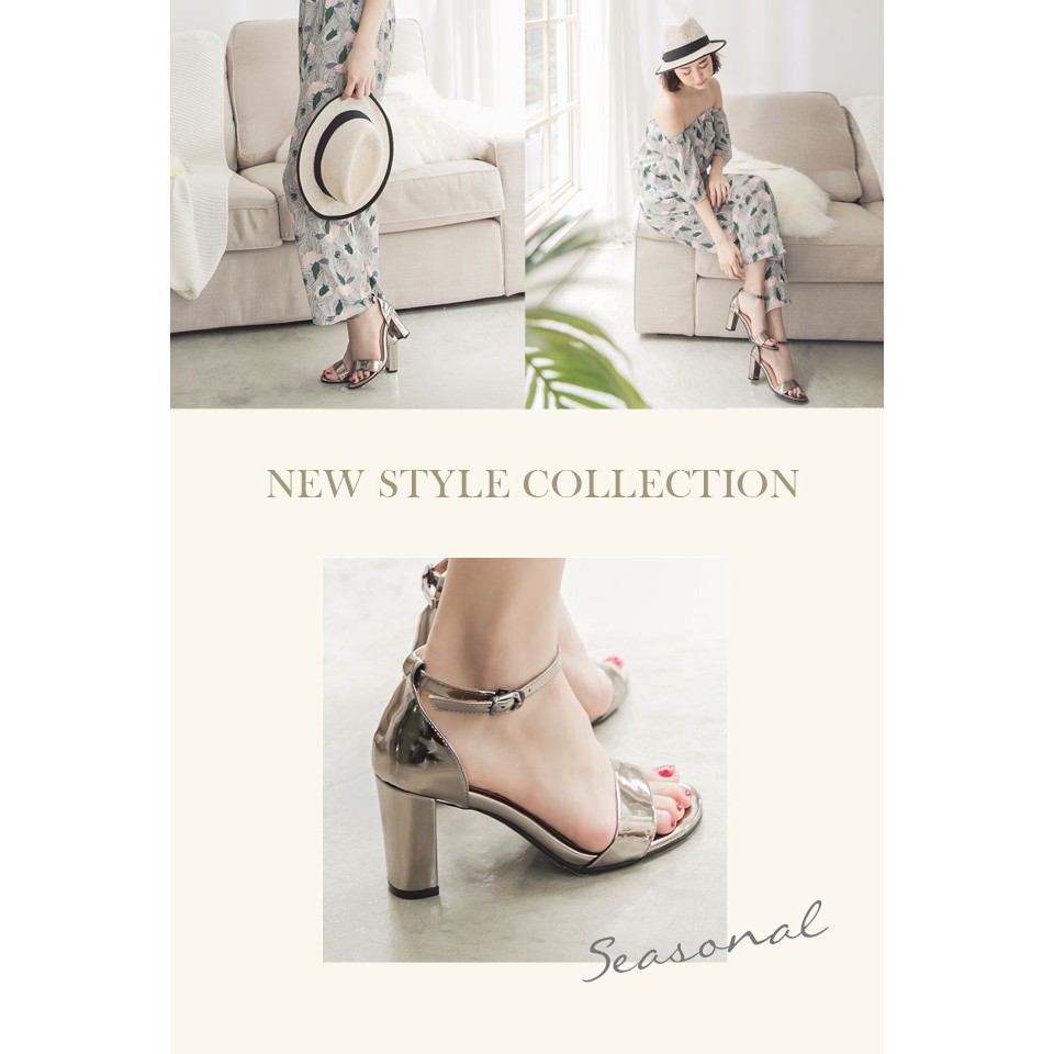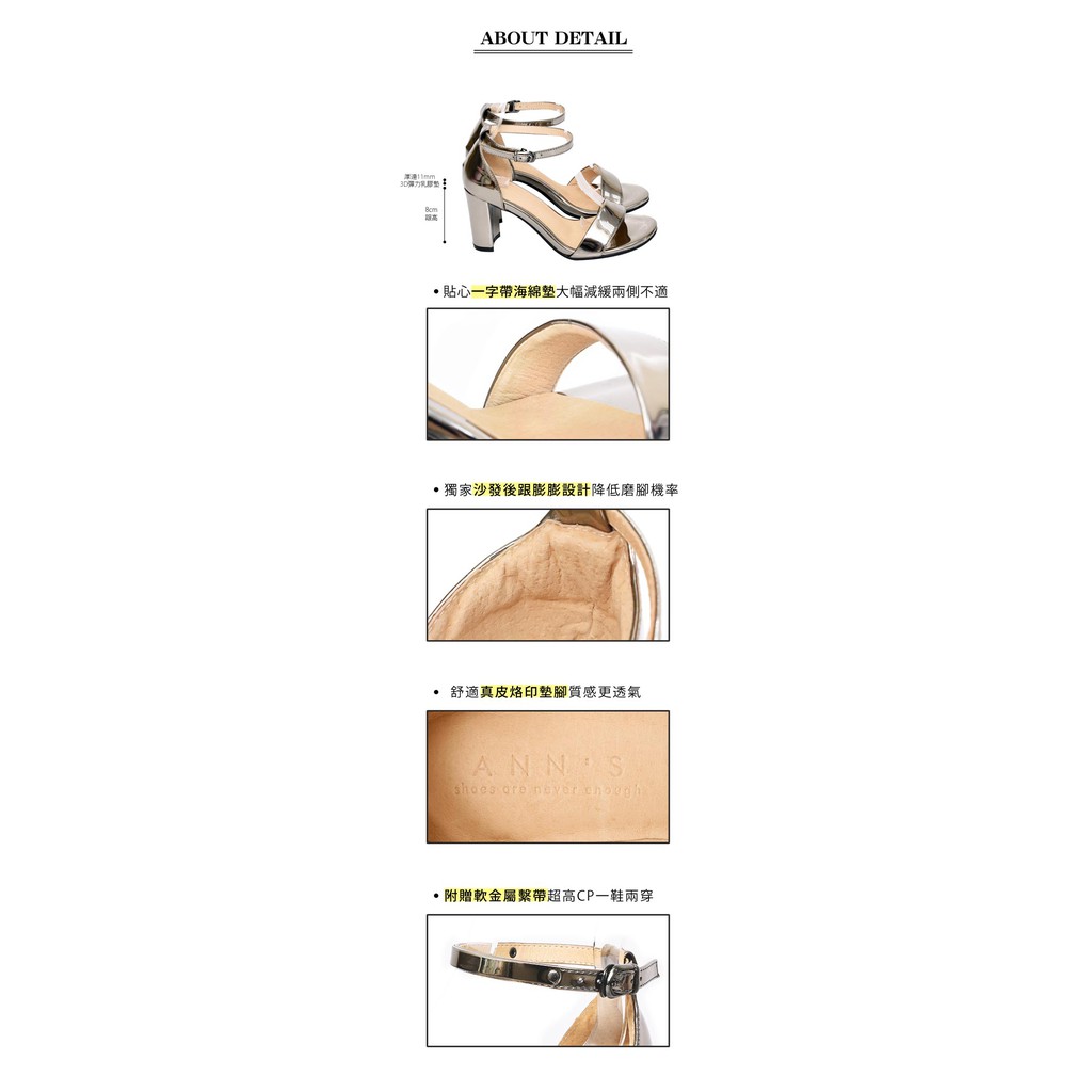 Ann’S不踩雷美腿製造機一字帶涼鞋-寬帶8公分高跟-銀灰