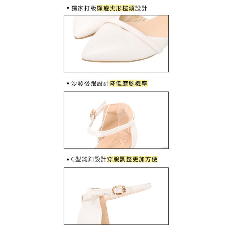 Ann’S柔美心動-造型斜帶顯瘦繞踝平底尖頭鞋-白