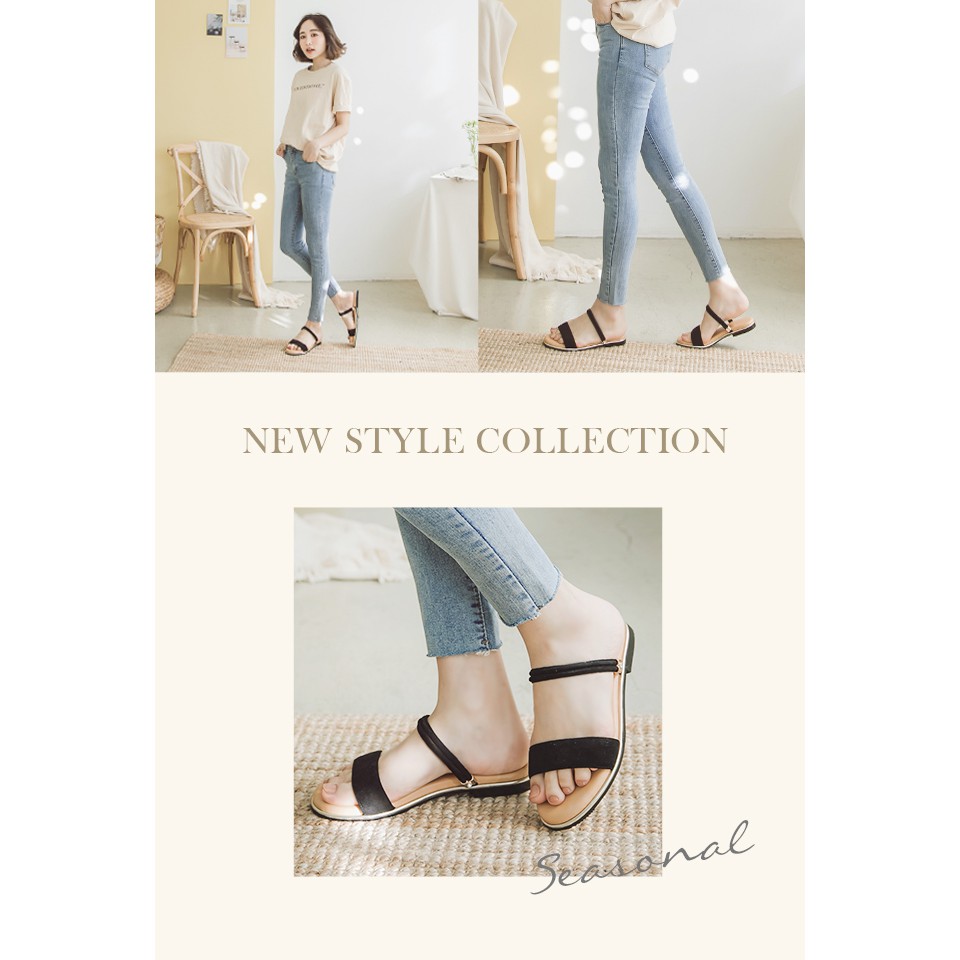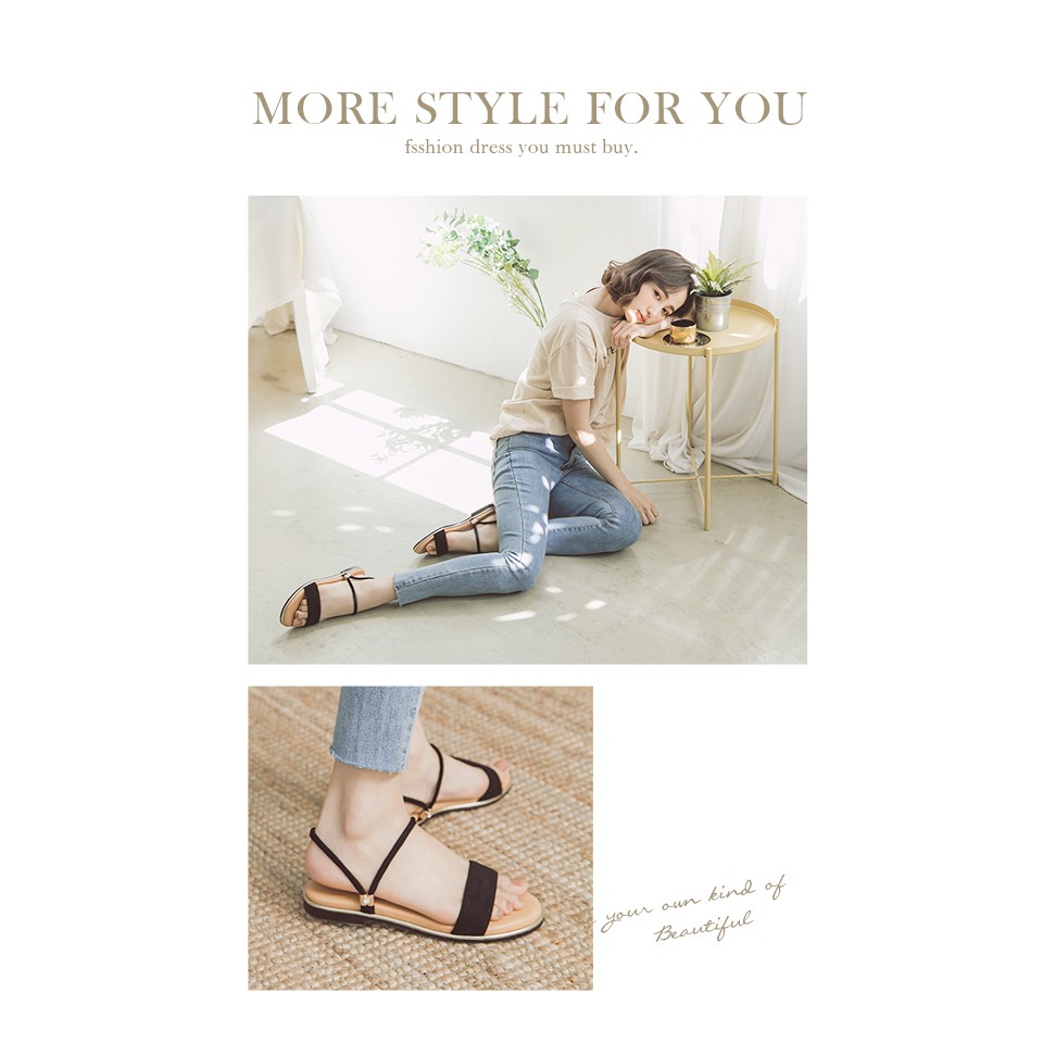 Ann’S放鬆機會-絨質小鑽扣可兩穿寬版平底涼鞋-黑