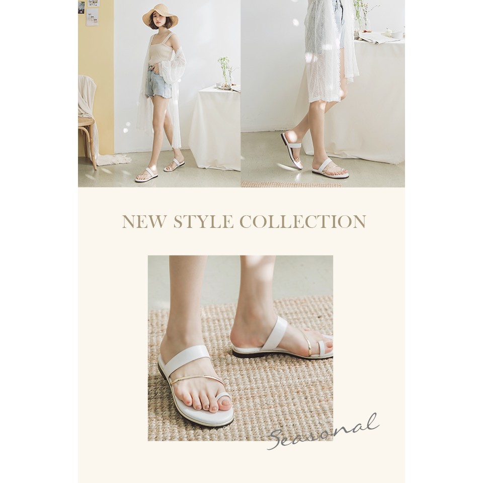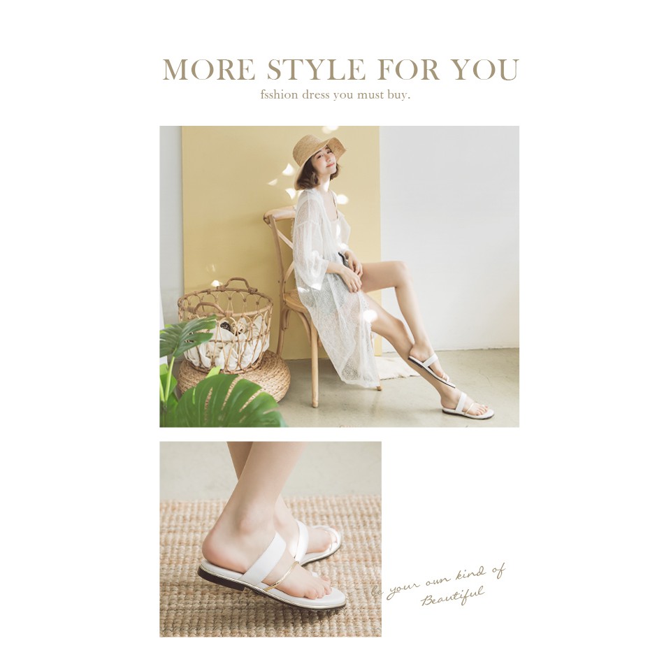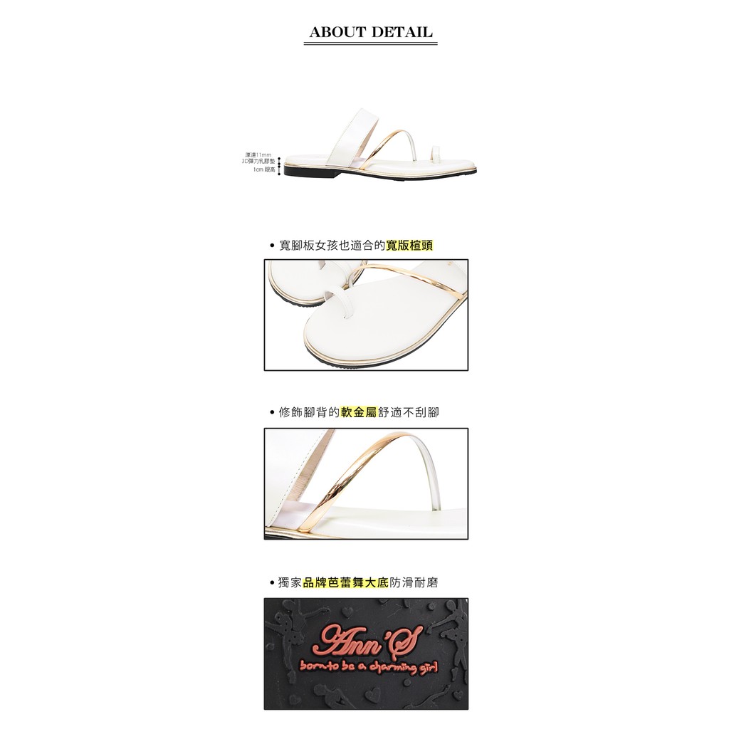 Ann’S女神光芒-素面套拇指軟金屬平底寬版涼拖鞋-白