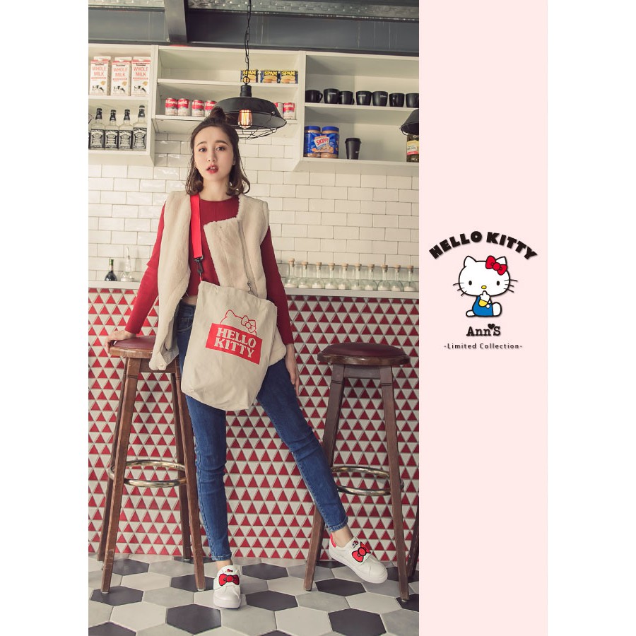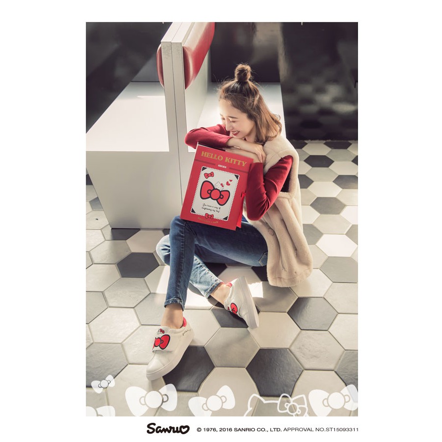 HELLO KITTY X Ann’S美式漢堡爆米花-蝴蝶結魔鬼氈躲貓貓球鞋