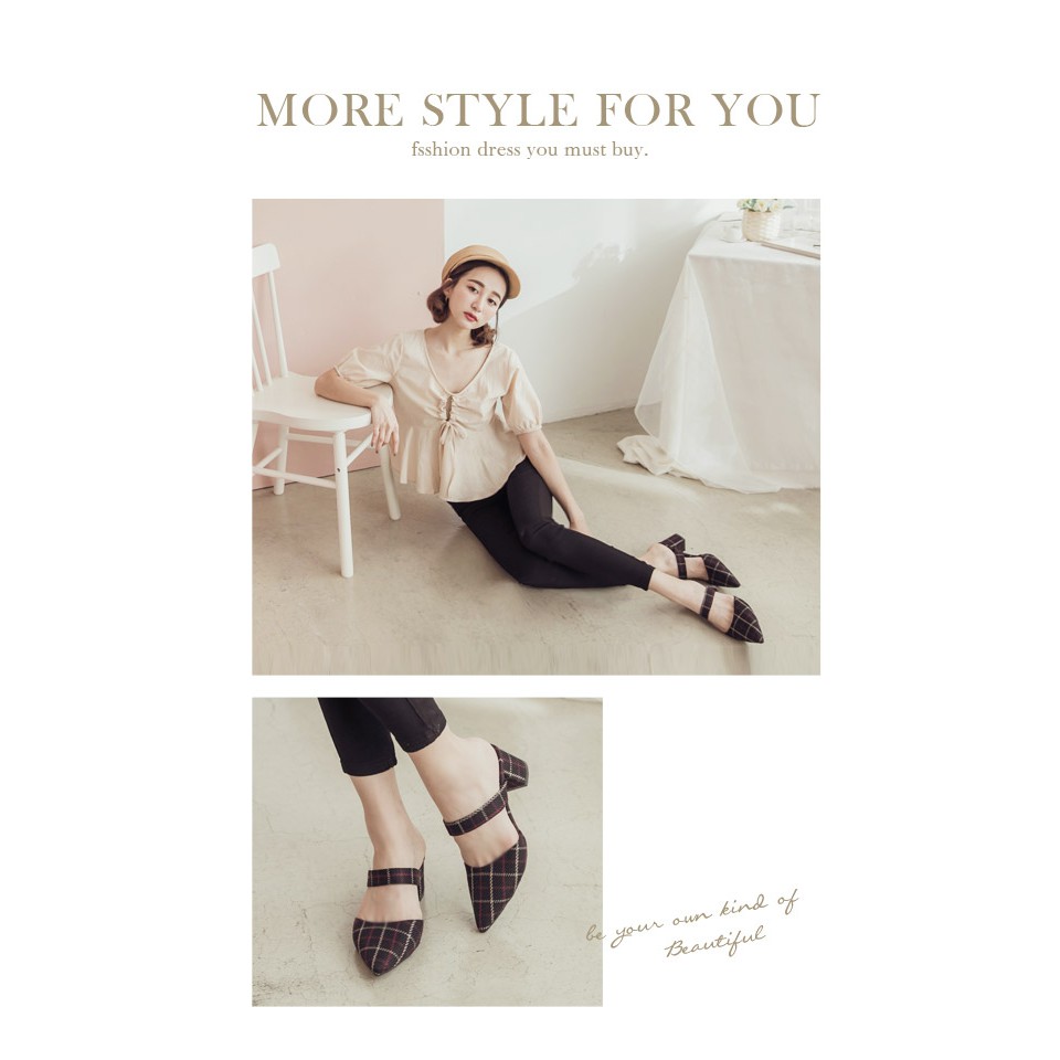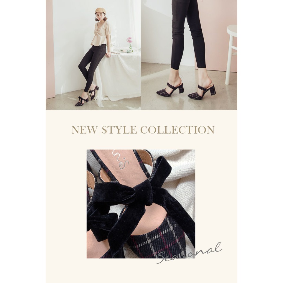 Ann’S春季感格紋-蝴蝶結2way粗跟穆勒鞋-黑