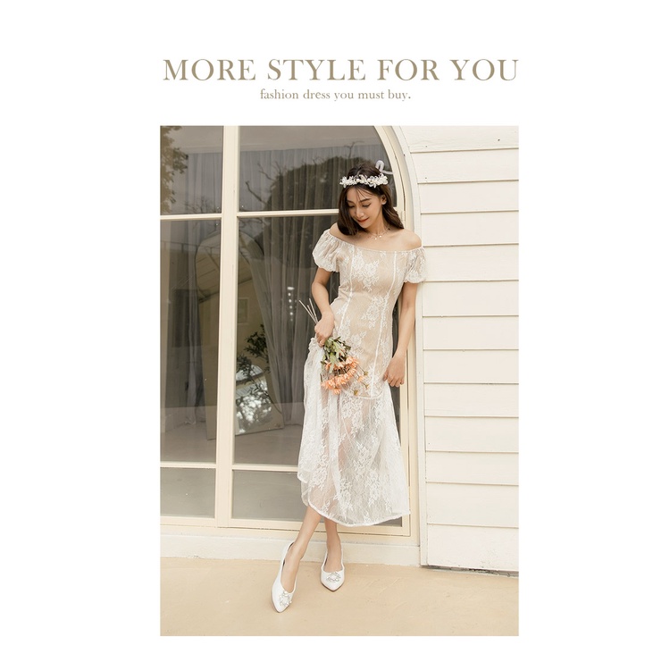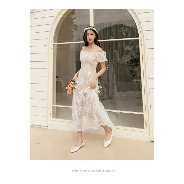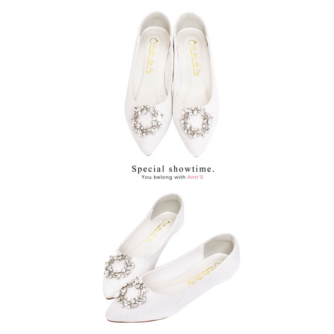 Ann’S祕密花園-白蕾絲鑽石花圈平底婚鞋-白