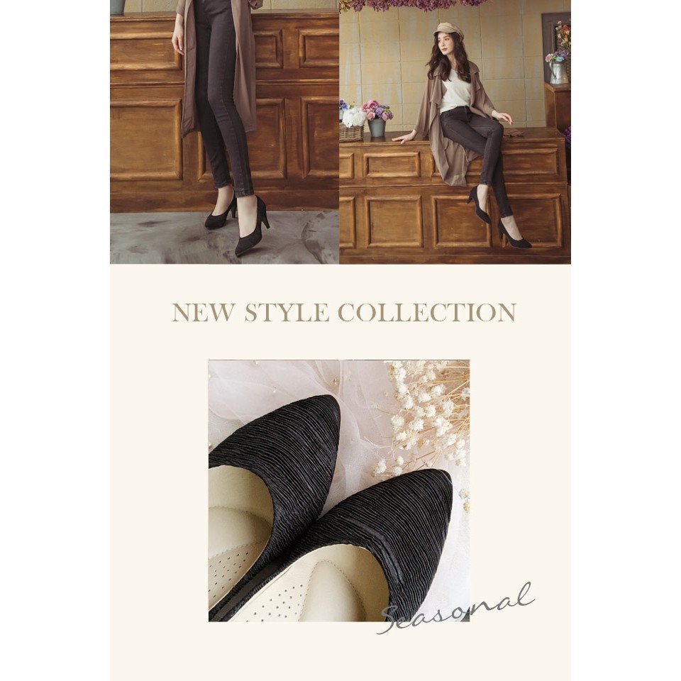 Ann’S襯托氣質-特殊緞面皺褶尖頭高跟鞋-黑