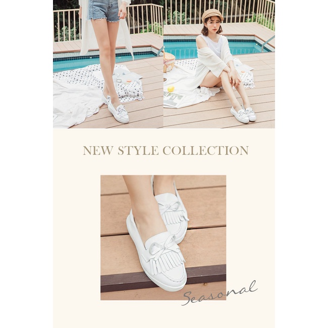 Ann’S第二代氣質派流蘇蝴蝶結全真皮小白鞋-白