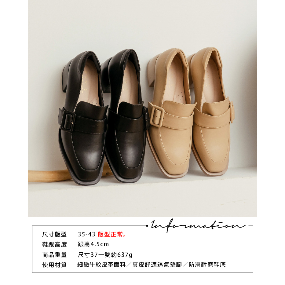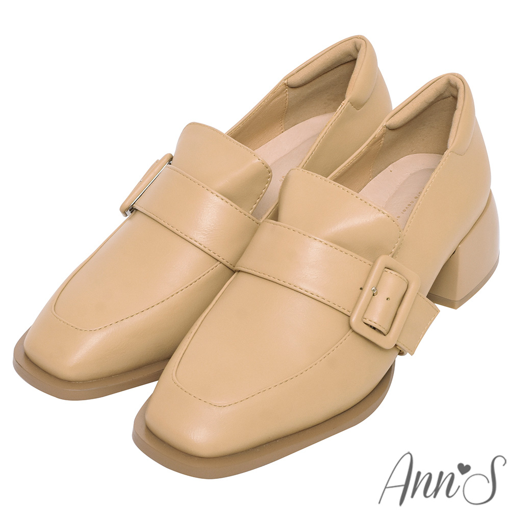 Ann’S同色系寬帶大方扣-方頭粗跟樂福鞋4.5cm-杏