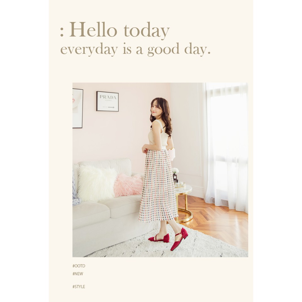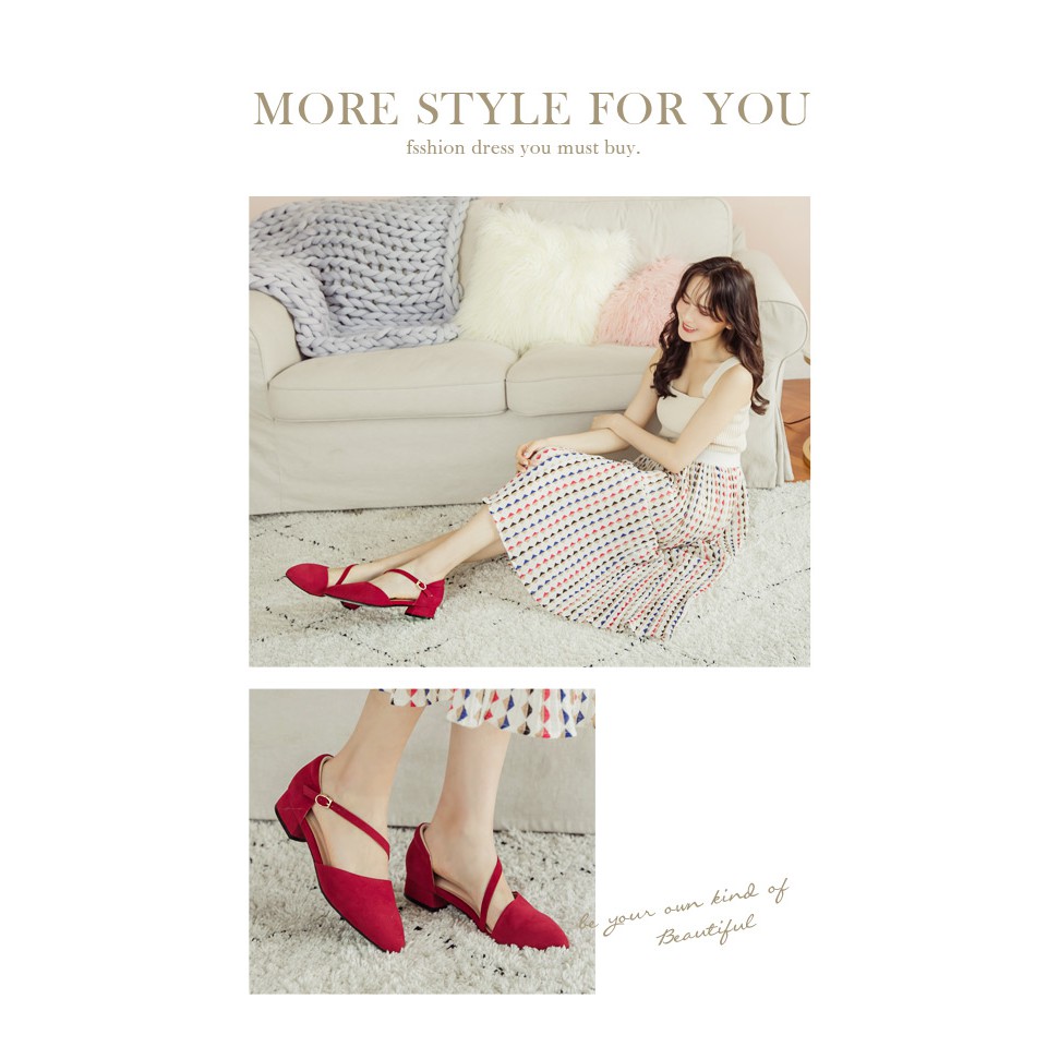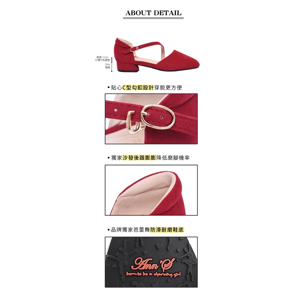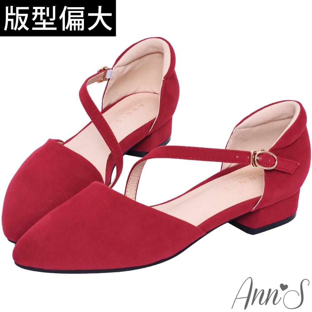 Ann’S瘦瘦的-延伸修長腳背斜帶低跟尖頭鞋-細絨紅