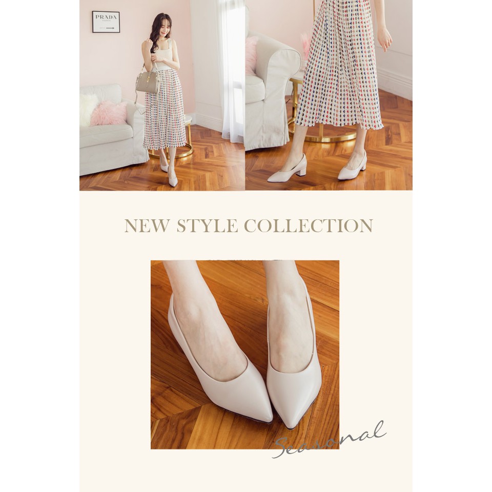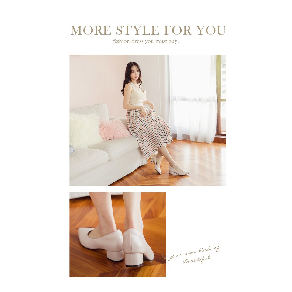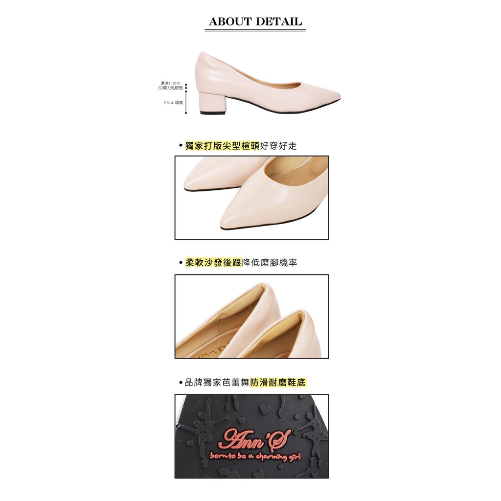 Ann’S加上優雅低跟版-復古皮革沙發後跟低跟尖頭鞋-粉