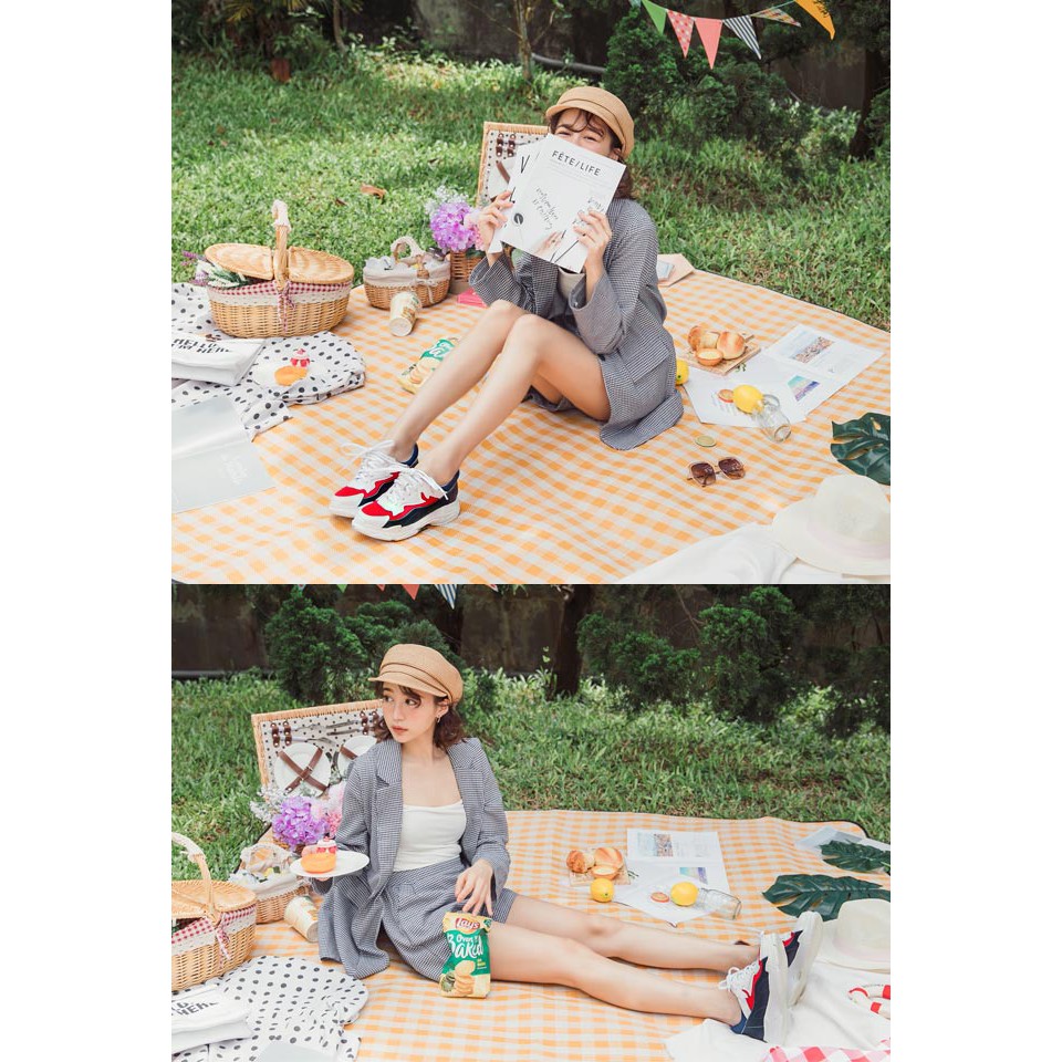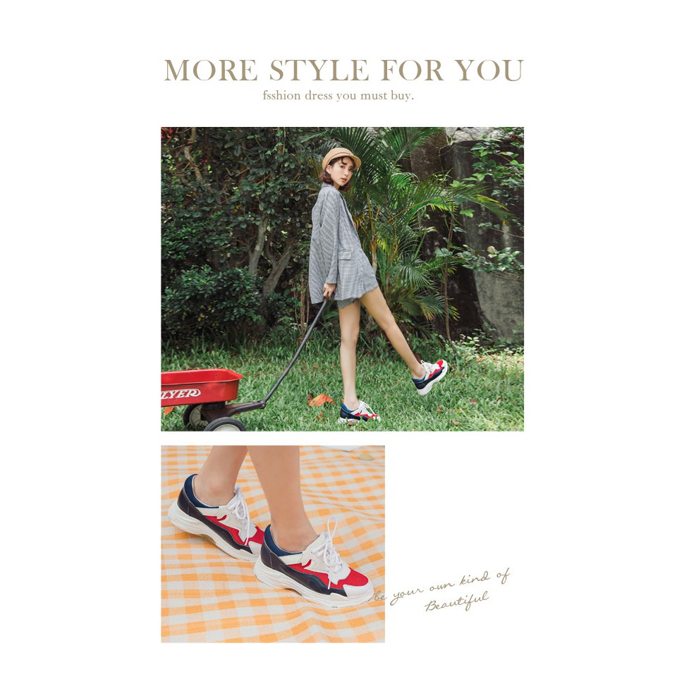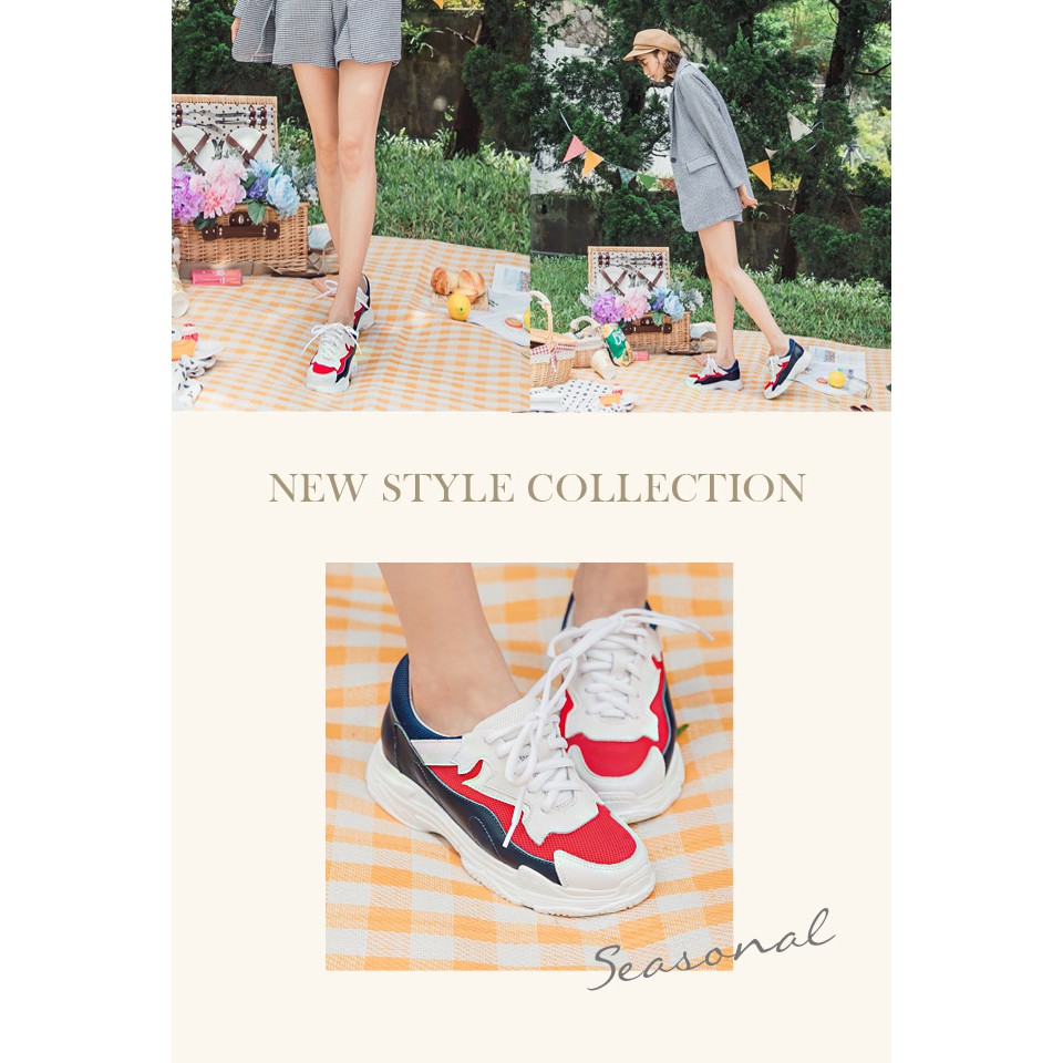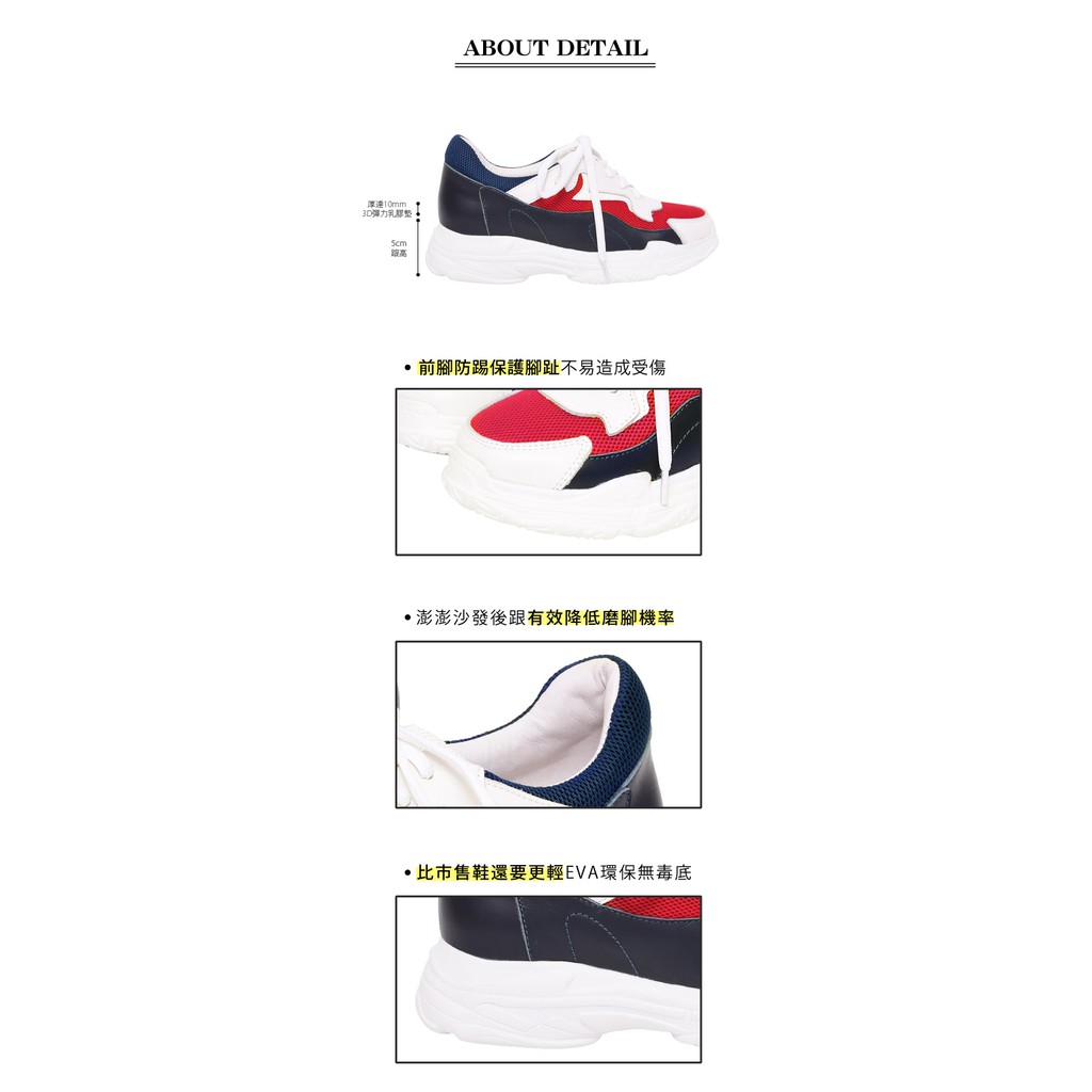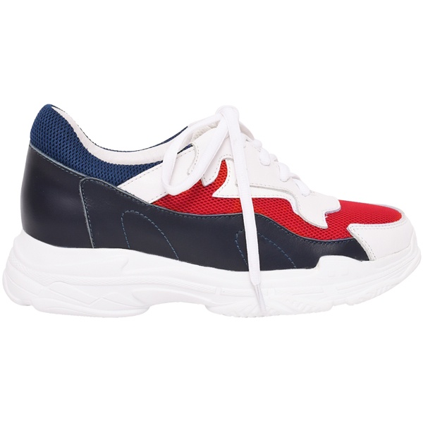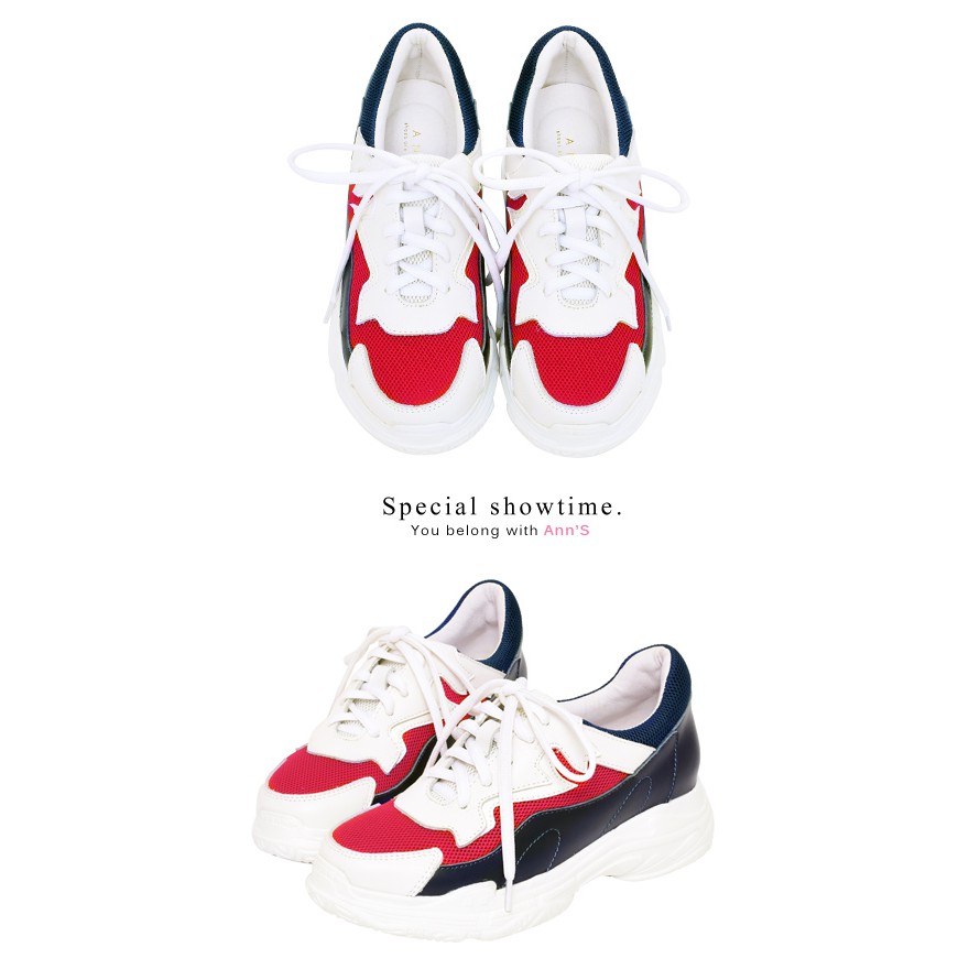 Ann’S魔術第四代拼接色調細腿真皮老爹小白鞋-深藍紅