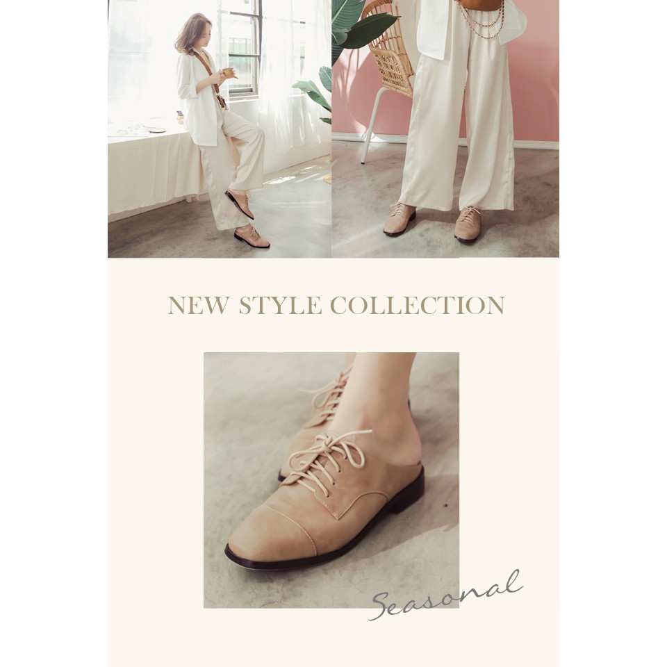 Ann’S中性魅力-不破內裡牛津綁帶穆勒鞋-粉