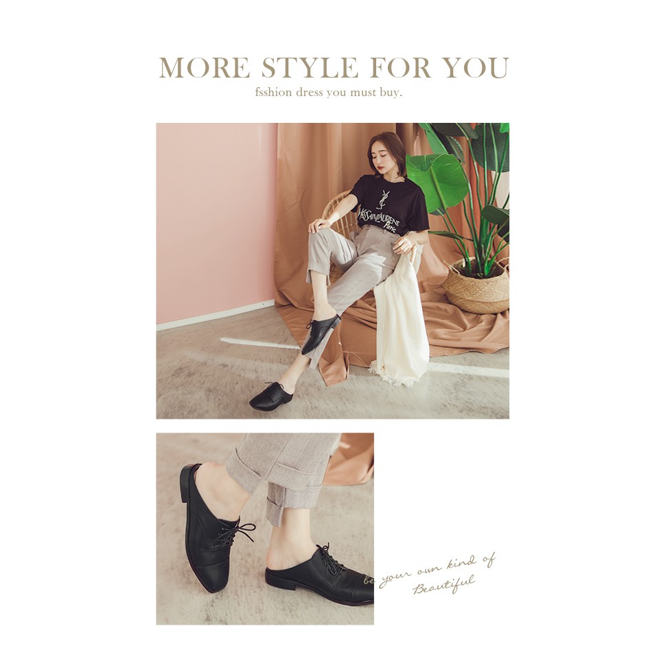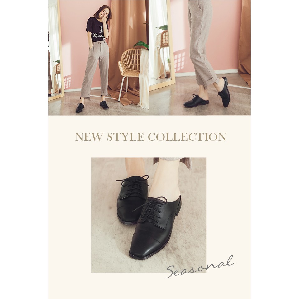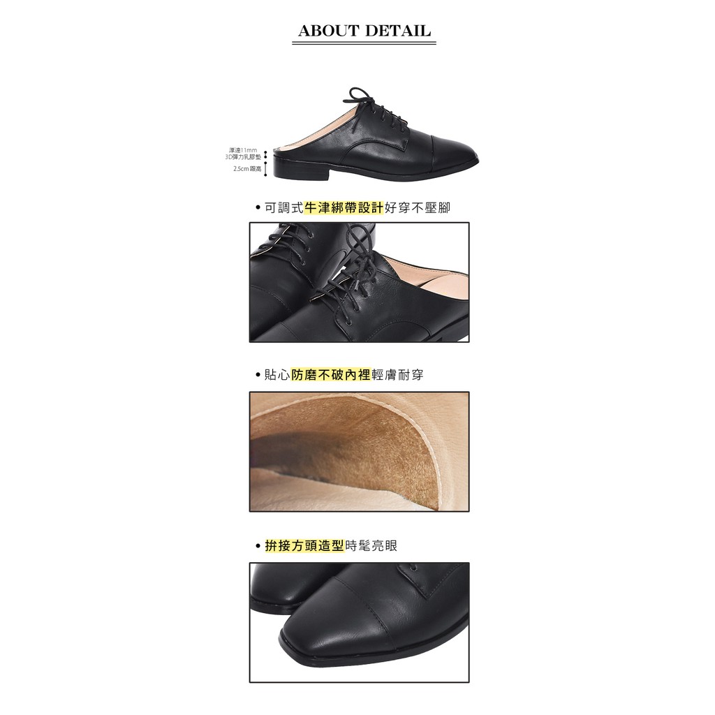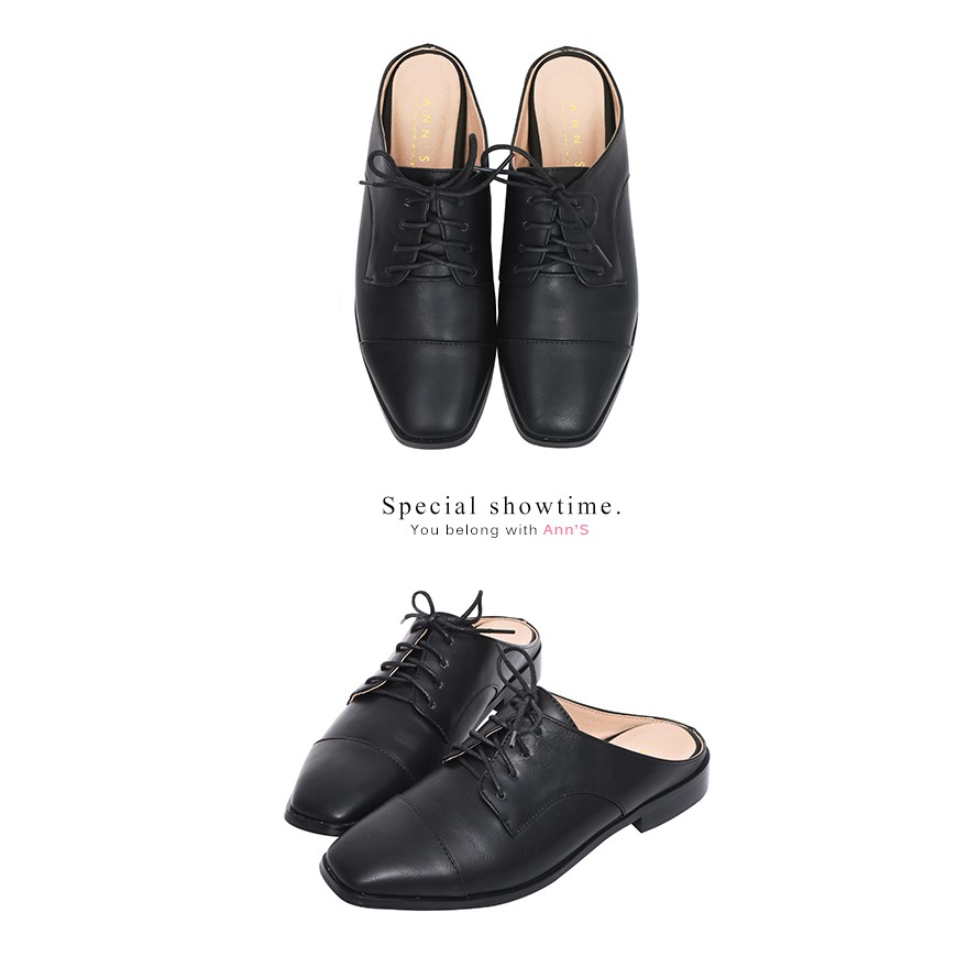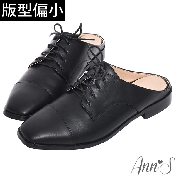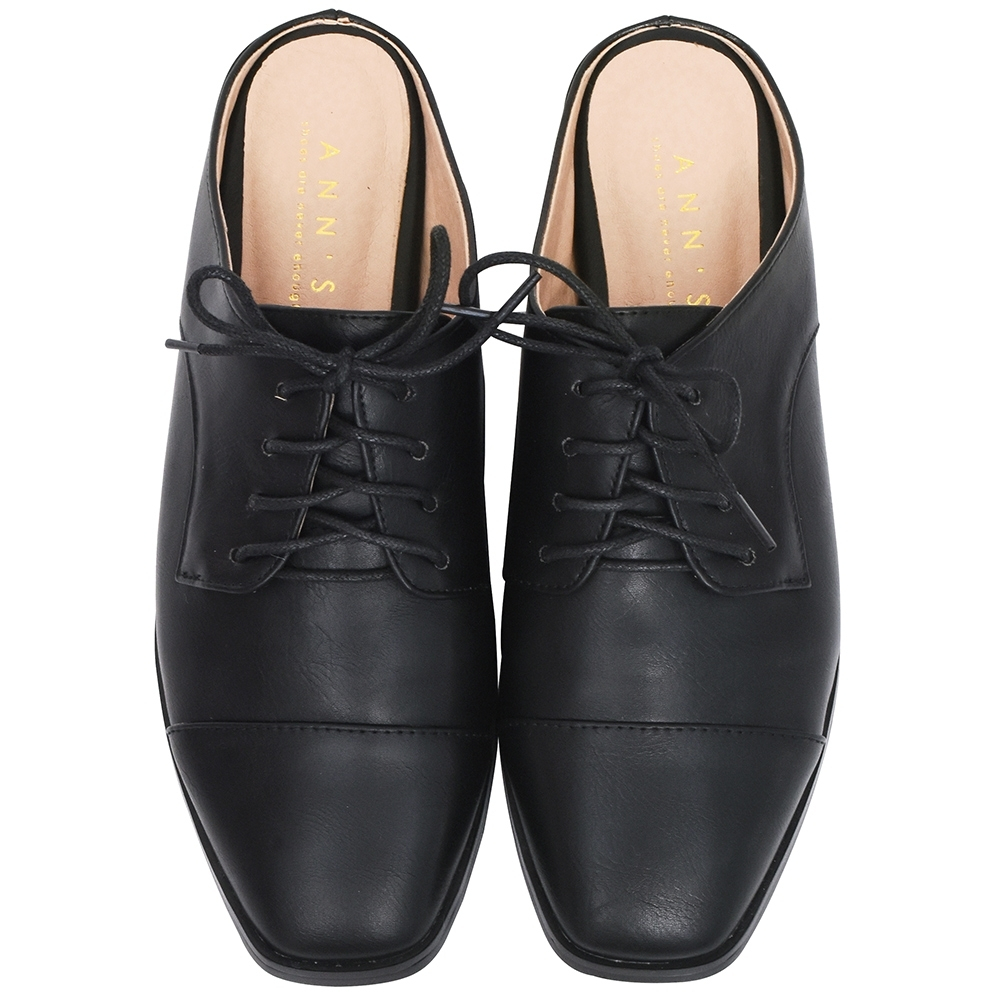 Ann’S中性魅力-不破內裡牛津綁帶穆勒鞋-黑