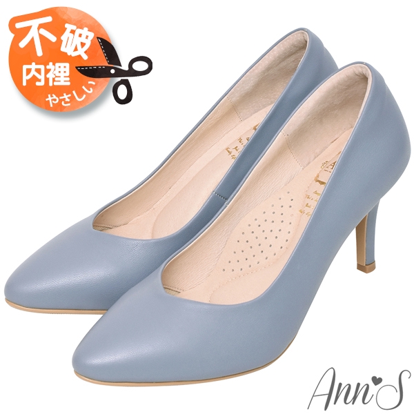 Ann’S舒適療癒系-V型美腿綿羊皮尖頭跟鞋-淺藍