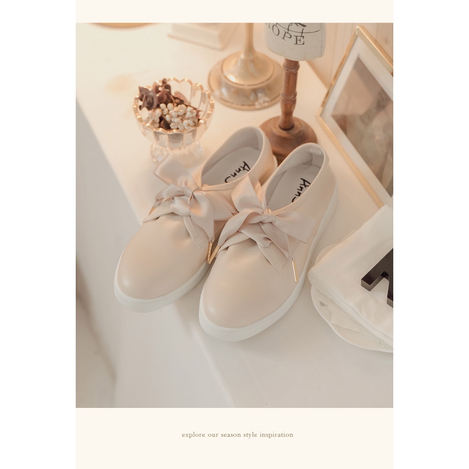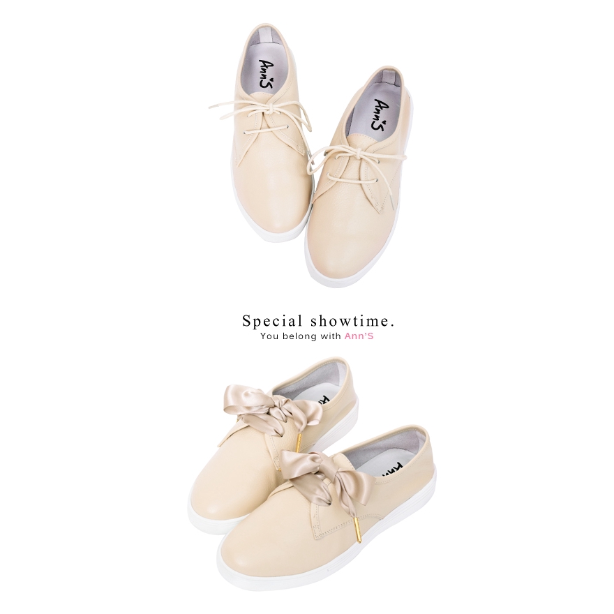 Ann’S第二代超軟真牛皮小清新附緞帶小白鞋-奶茶杏