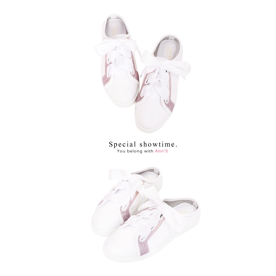 Ann’S第二代夢幻獨角獸緞帶全真皮穆勒小白鞋