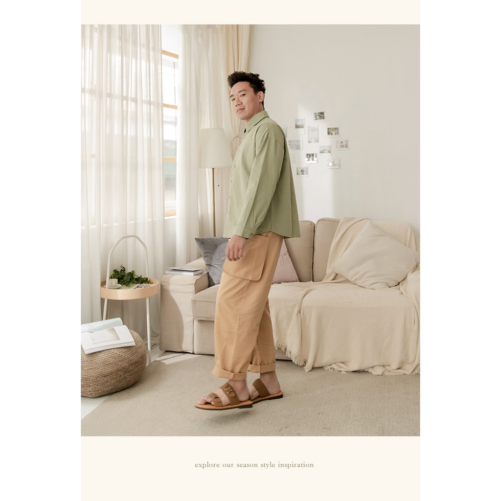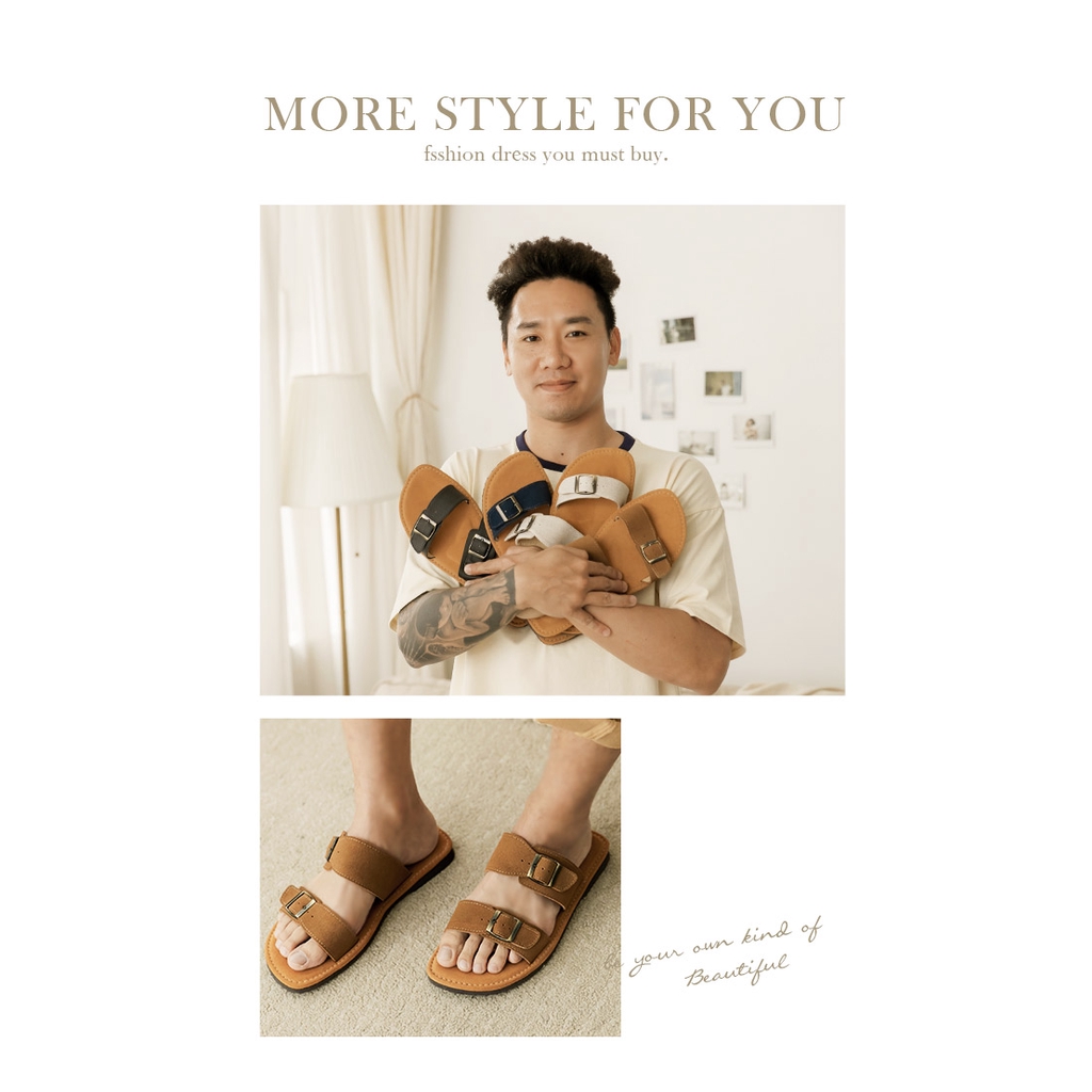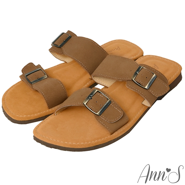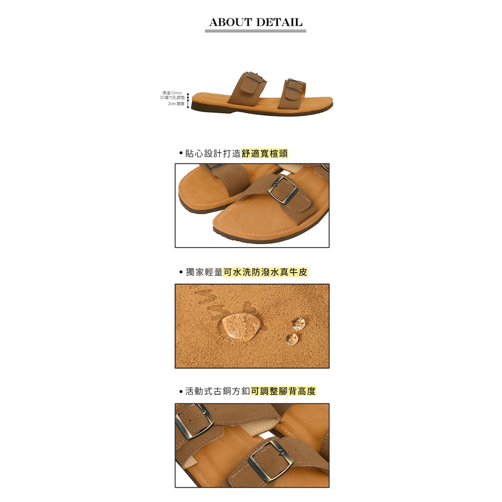 Ann’S水洗牛皮-男士復古雙扣帶涼拖鞋-棕