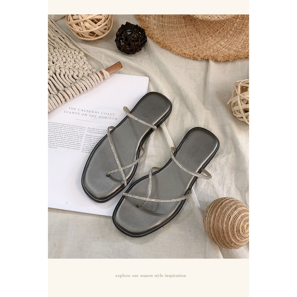 Ann’S裸膚透明系-軟質鑽石夾腳方頭平底涼拖鞋-黑(版型偏小)