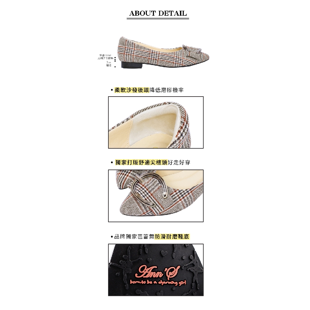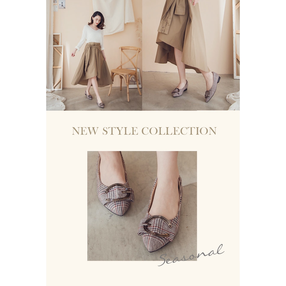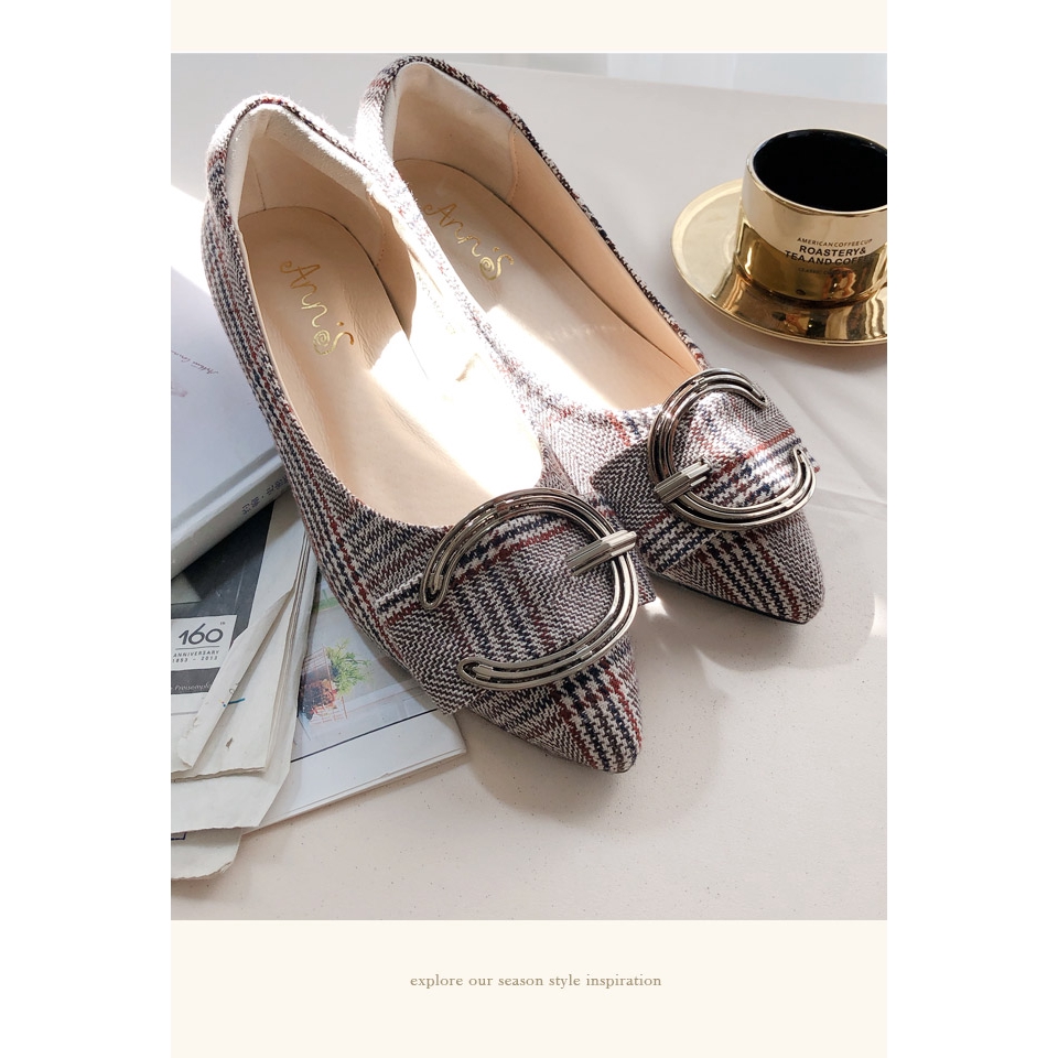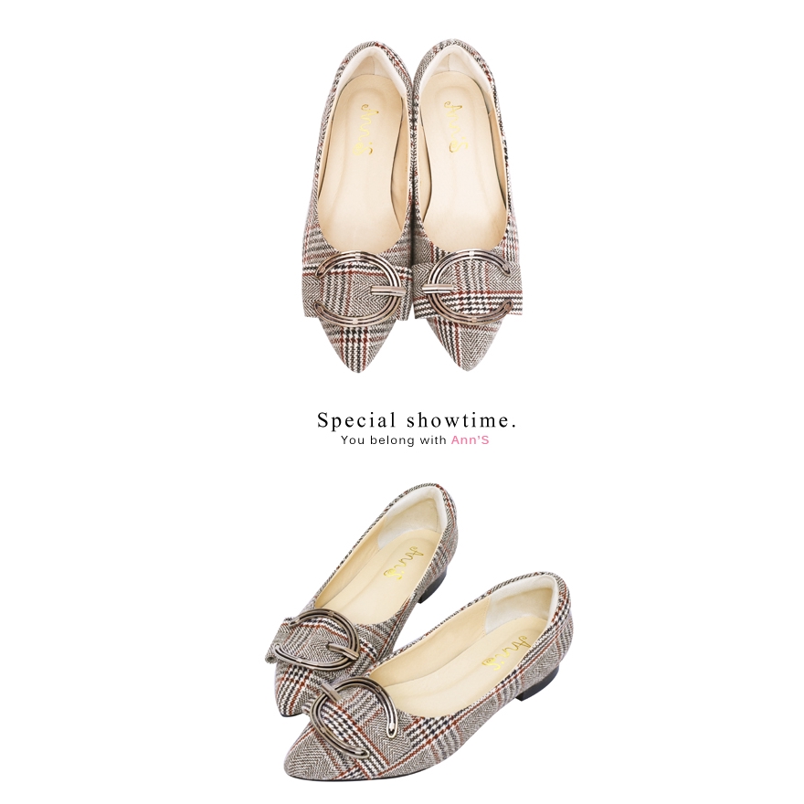 Ann’S優雅蘇格蘭-毛呢格紋造型C扣平底尖頭鞋
