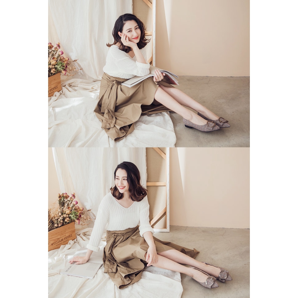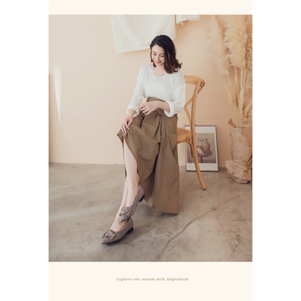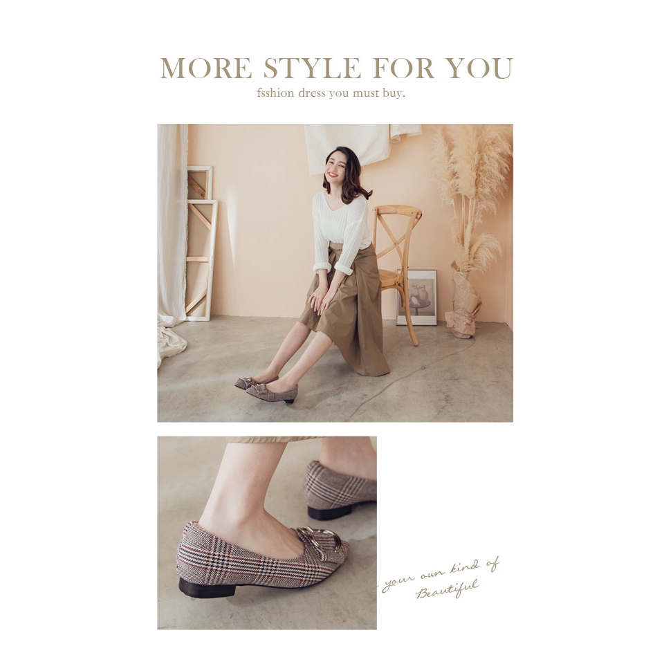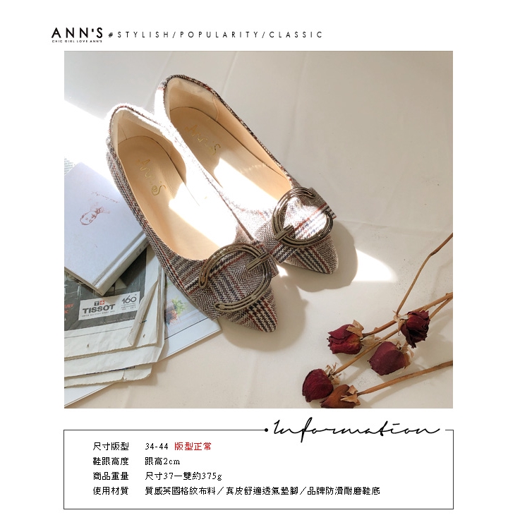 Ann’S優雅蘇格蘭-毛呢格紋造型C扣平底尖頭鞋