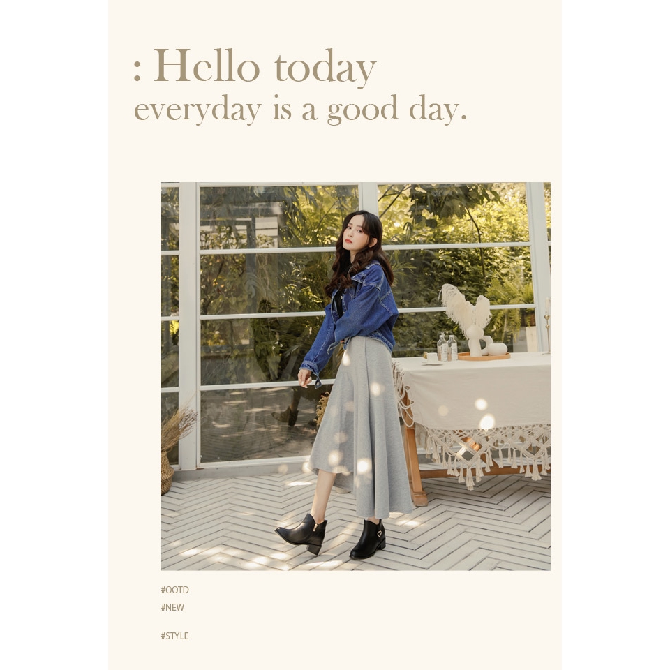 Ann’S綜合微甜-愛心釦側V激瘦內增高粗跟短靴-黑