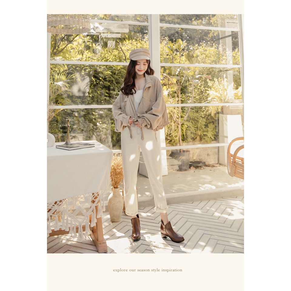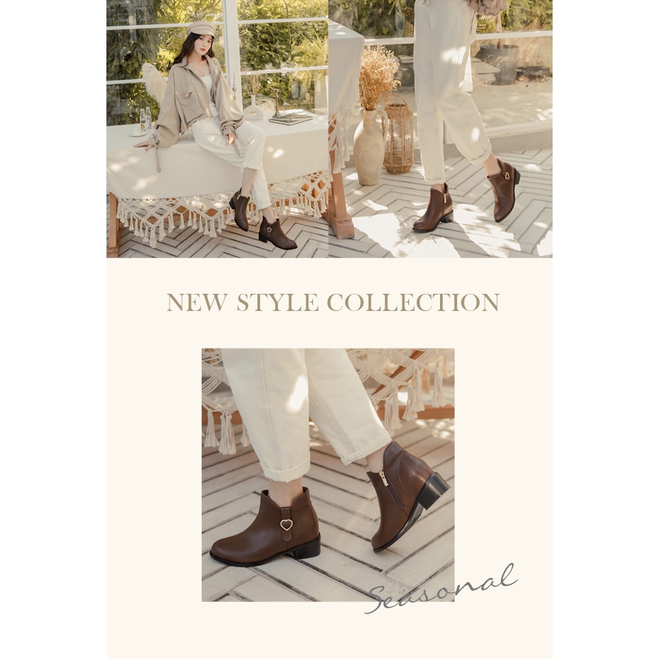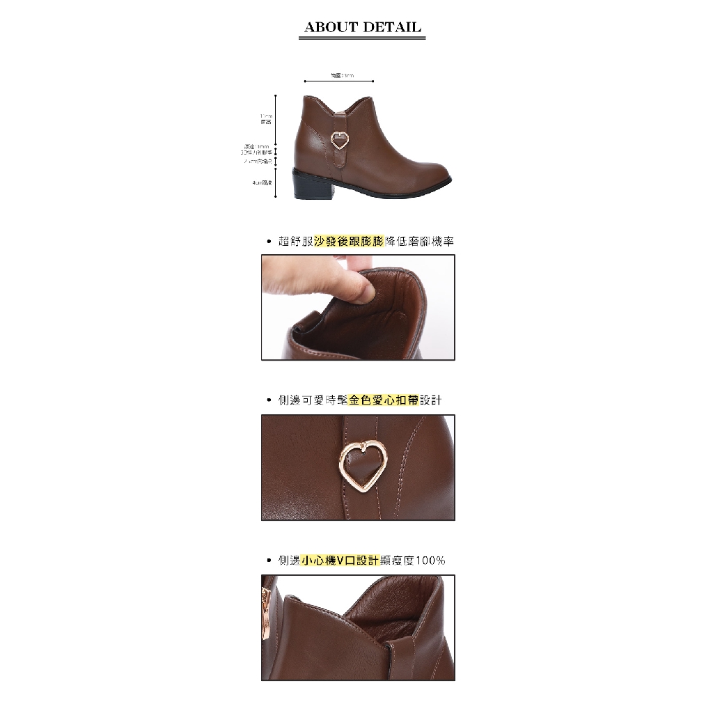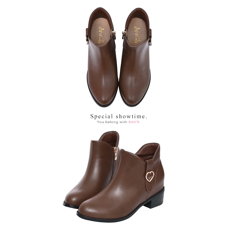 Ann’S綜合微甜-愛心釦側V激瘦內增高粗跟短靴-咖
