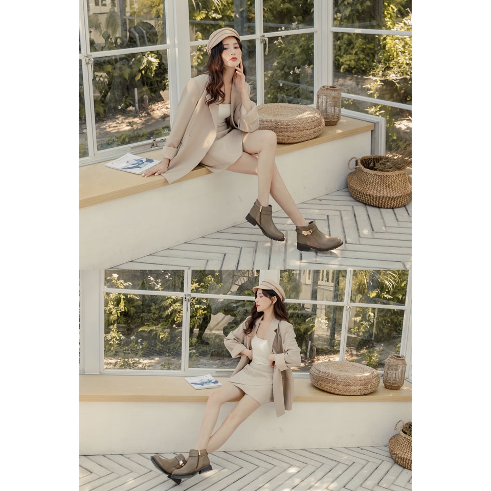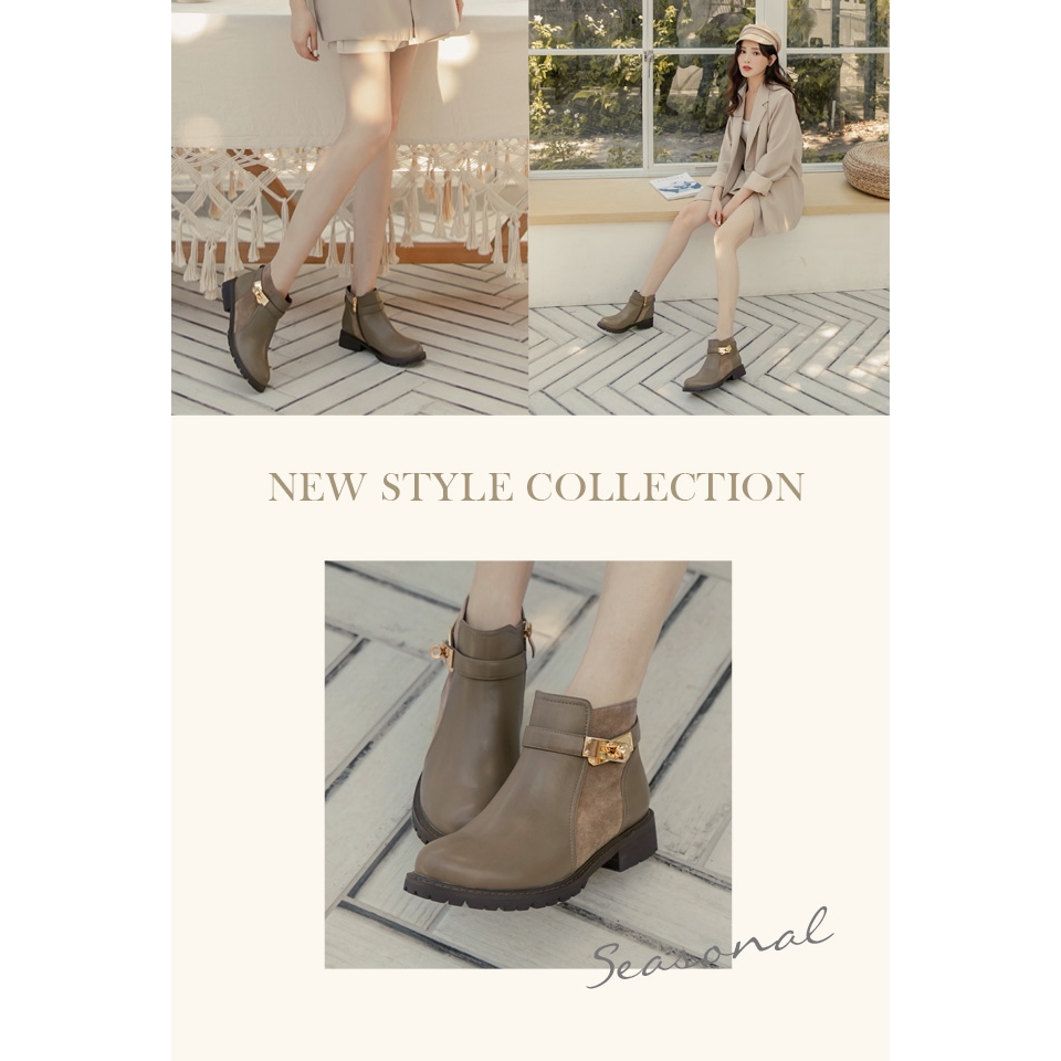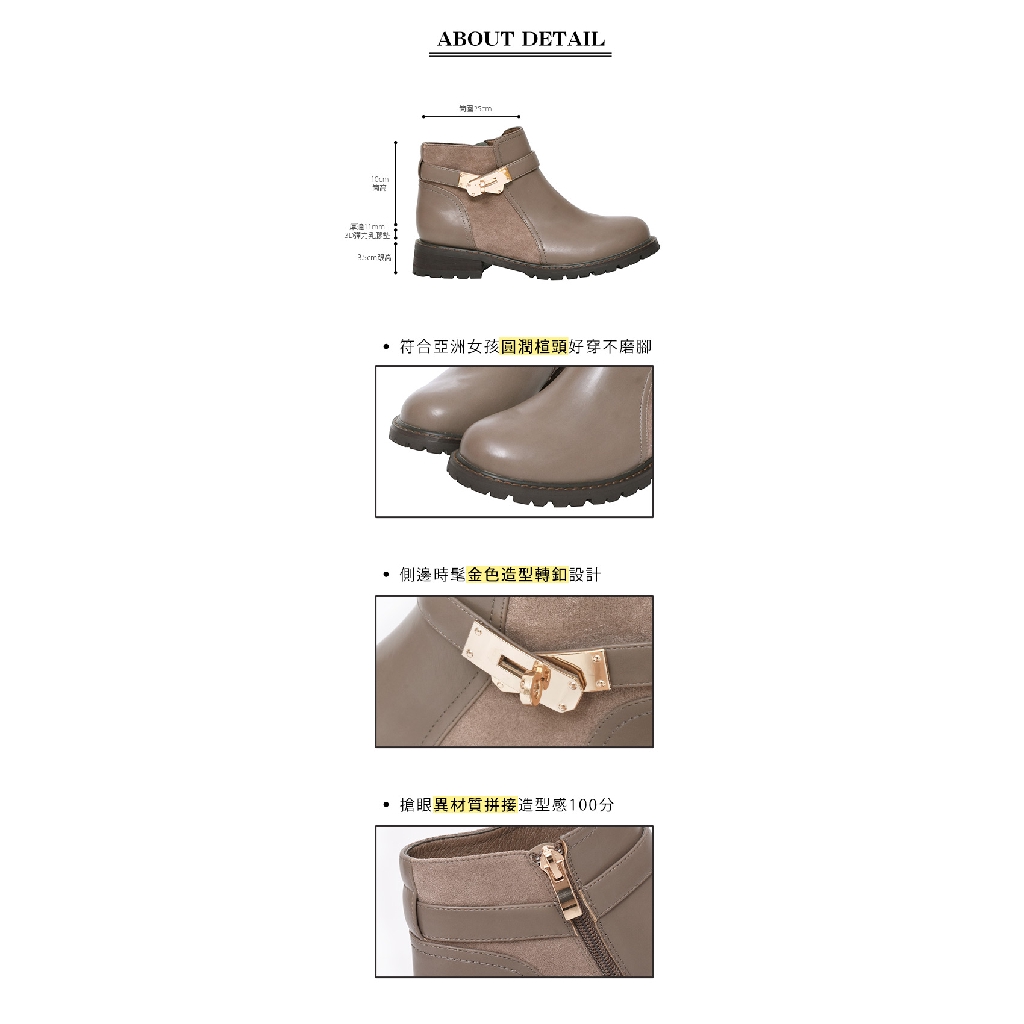 Ann’S簡練感-淺金轉扣拼接平底短靴-咖啡