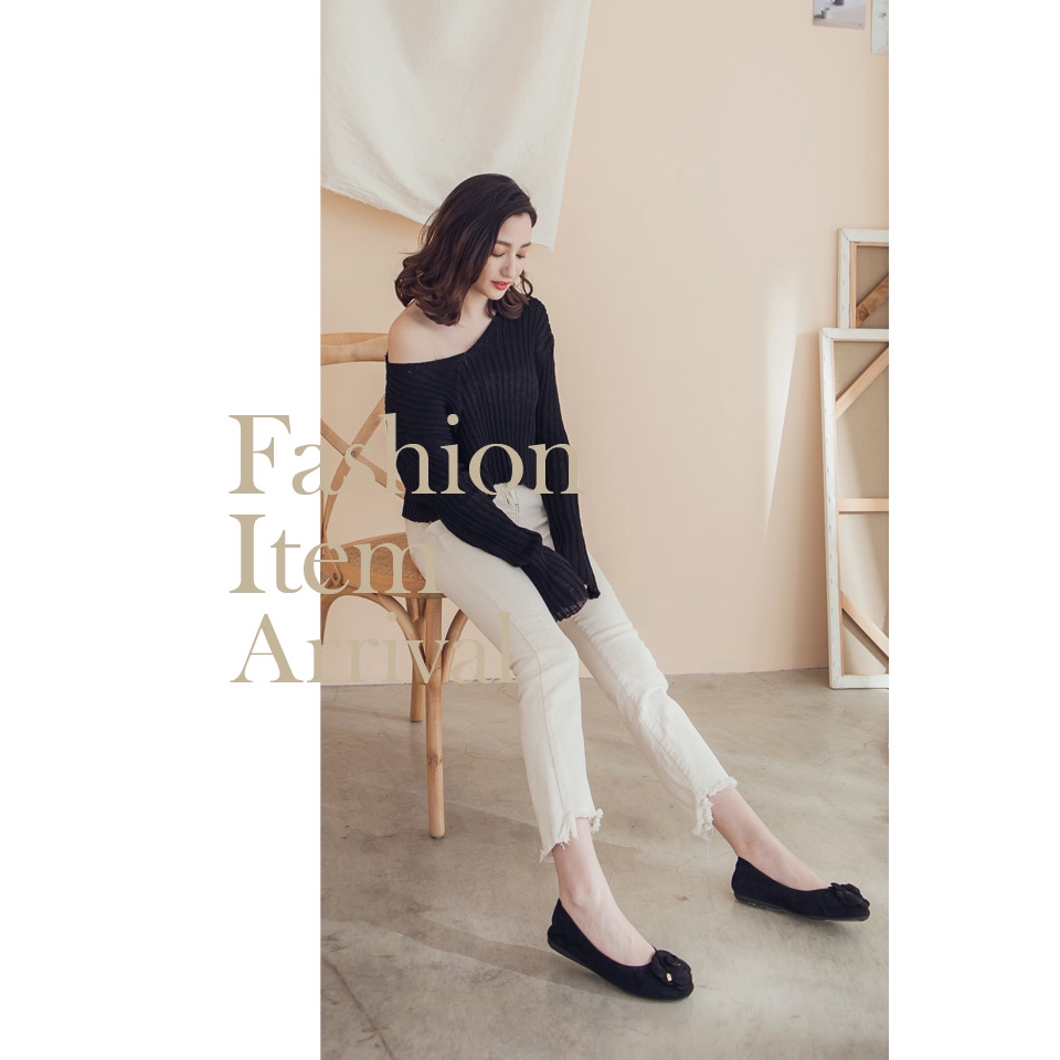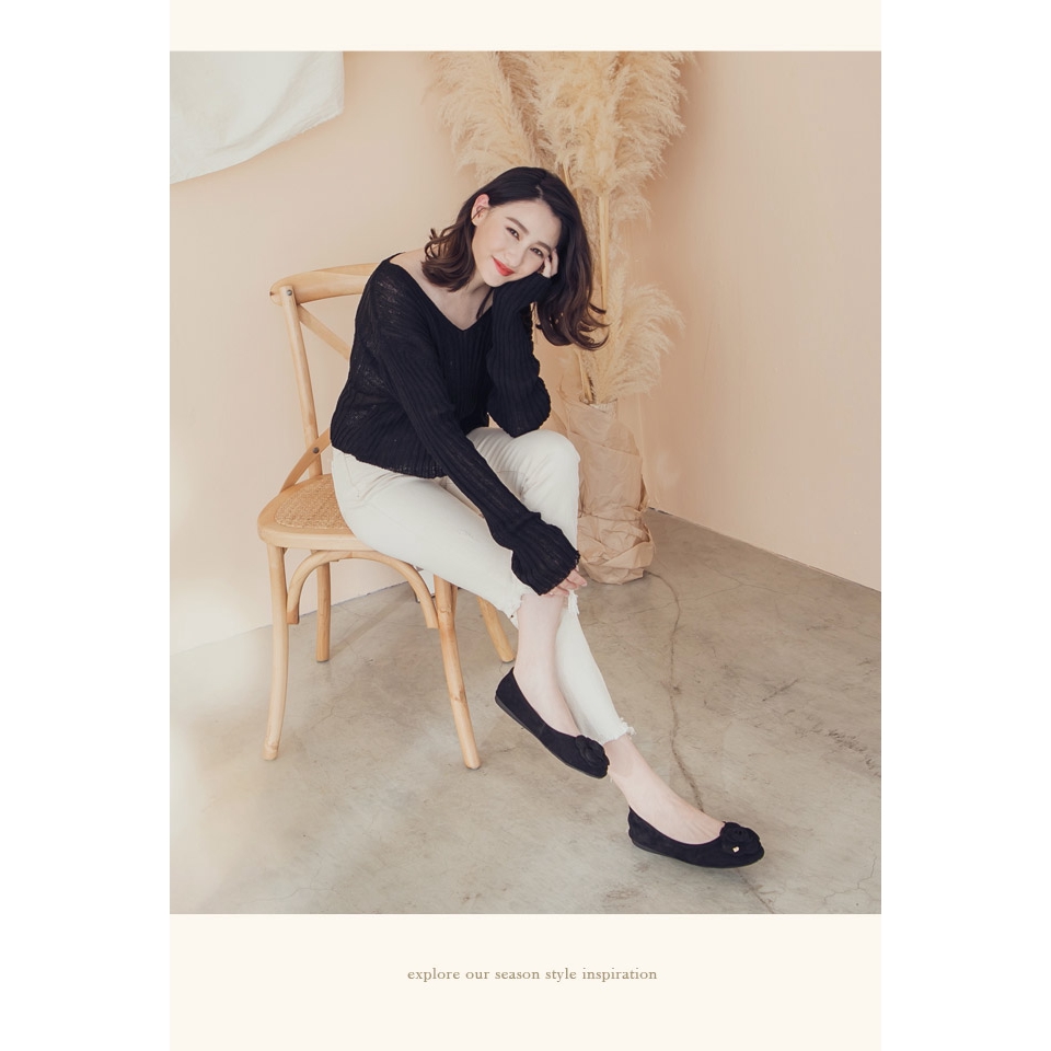 Ann’S了不起的魅力-山茶花金色小愛心全真皮麂皮平底娃娃鞋-黑