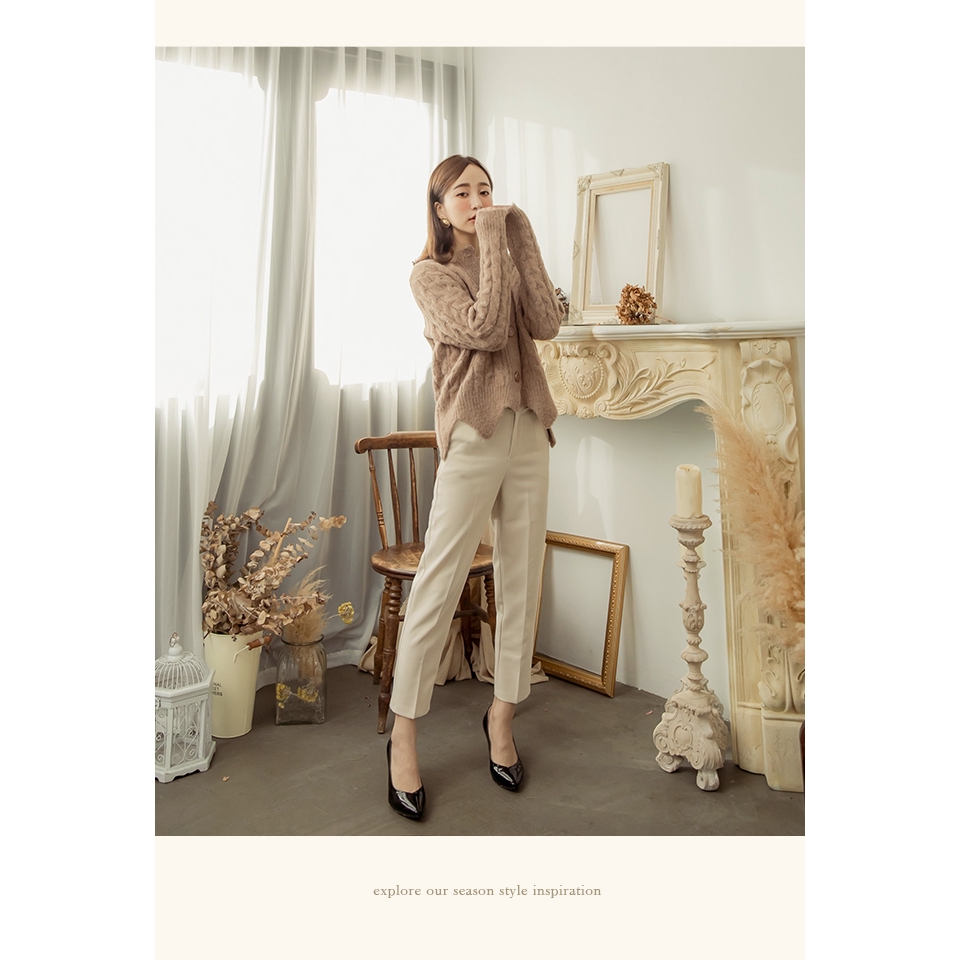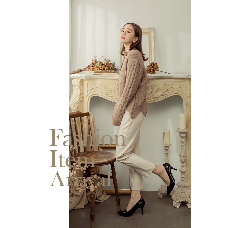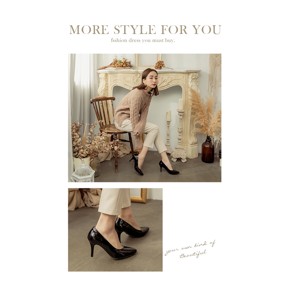 Ann’S舒適療癒系-V型美腿綿羊皮尖頭跟鞋-漆皮黑