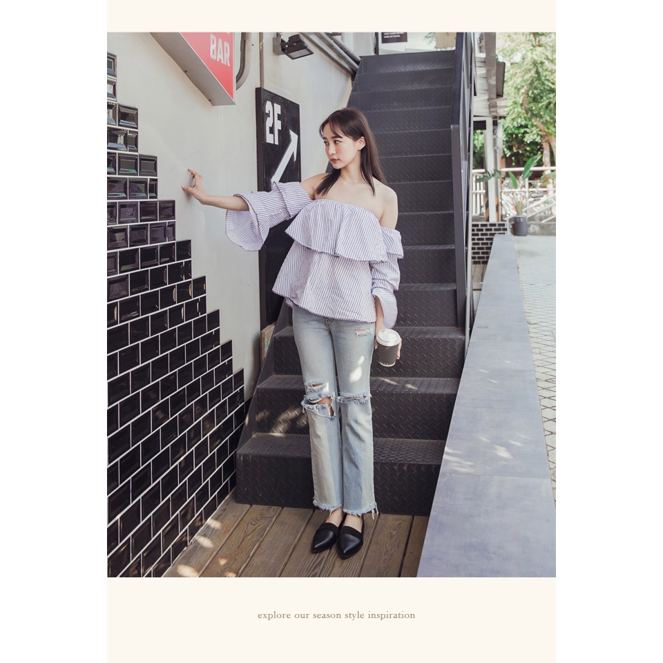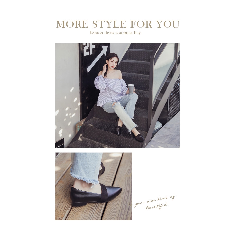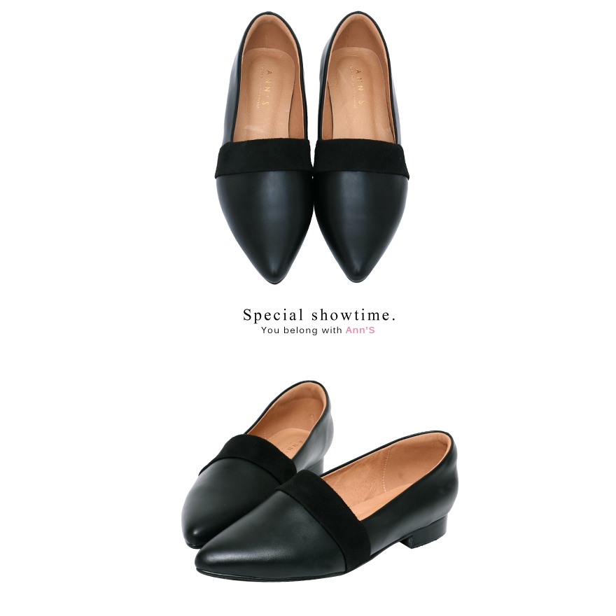Ann’S簡潔摩登-素面異材質拼接尖頭平底樂福鞋-黑