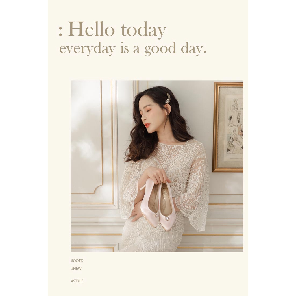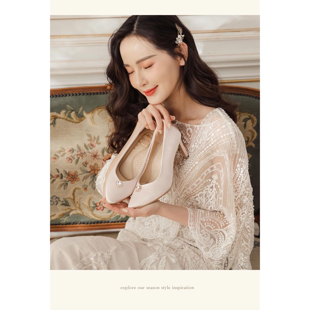 Ann’S茉莉公主-夢幻絲絹V口花型閃鑽尖頭高跟婚鞋8cm-粉